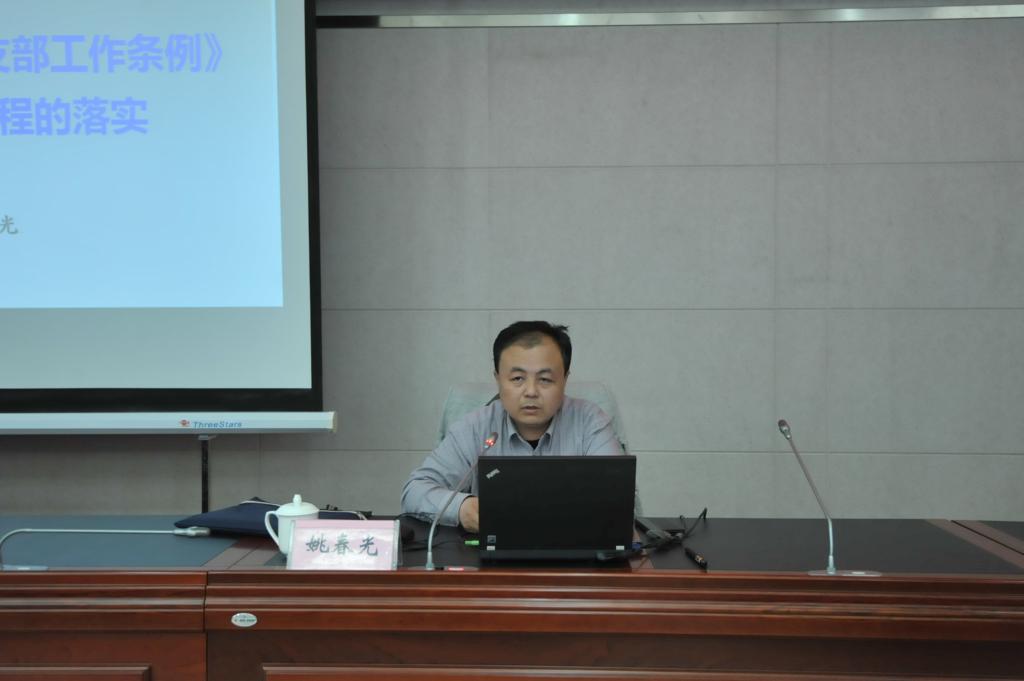 4月11日下午,区直机关工委姚春光同志讲授了题为“学习贯彻支部工作条例推进‘三强九严’工程落实”专题辅导讲座。围绕制定《中国共产党支部工作条例(试行)》的背景、过程和基本原则;自治区有关“三强九严”工程的要求;如何加强和改进机关党的建设,进一步推进党建与业务深度融合等内容展开了详细解读。