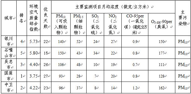 2016年5月宁夏5市环境空气质量状况排名
