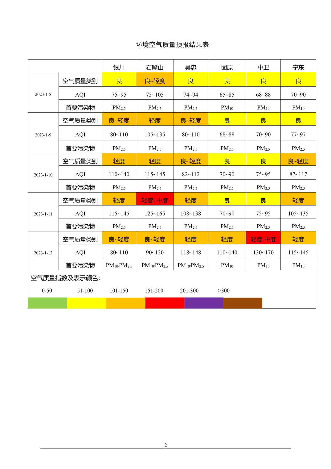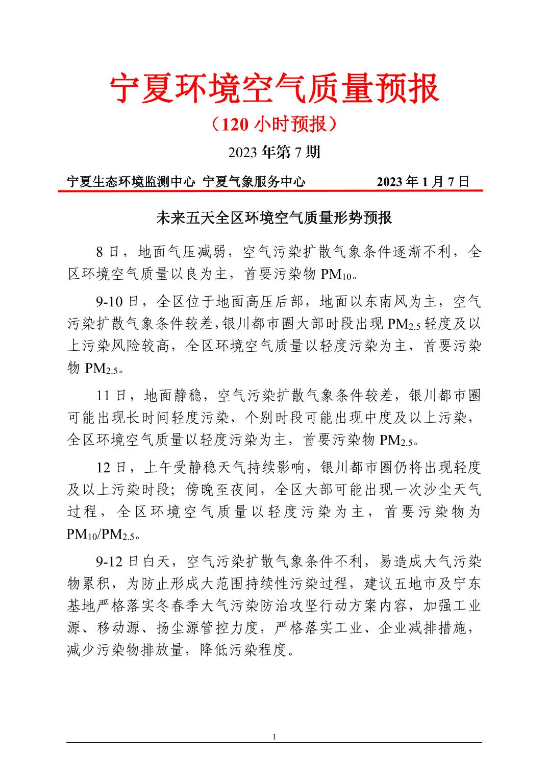 2023年1月7日宁夏环境空气质量预报信息