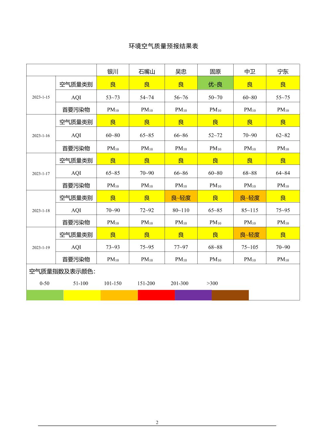 2023年1月14日宁夏环境空气质量预报信息
