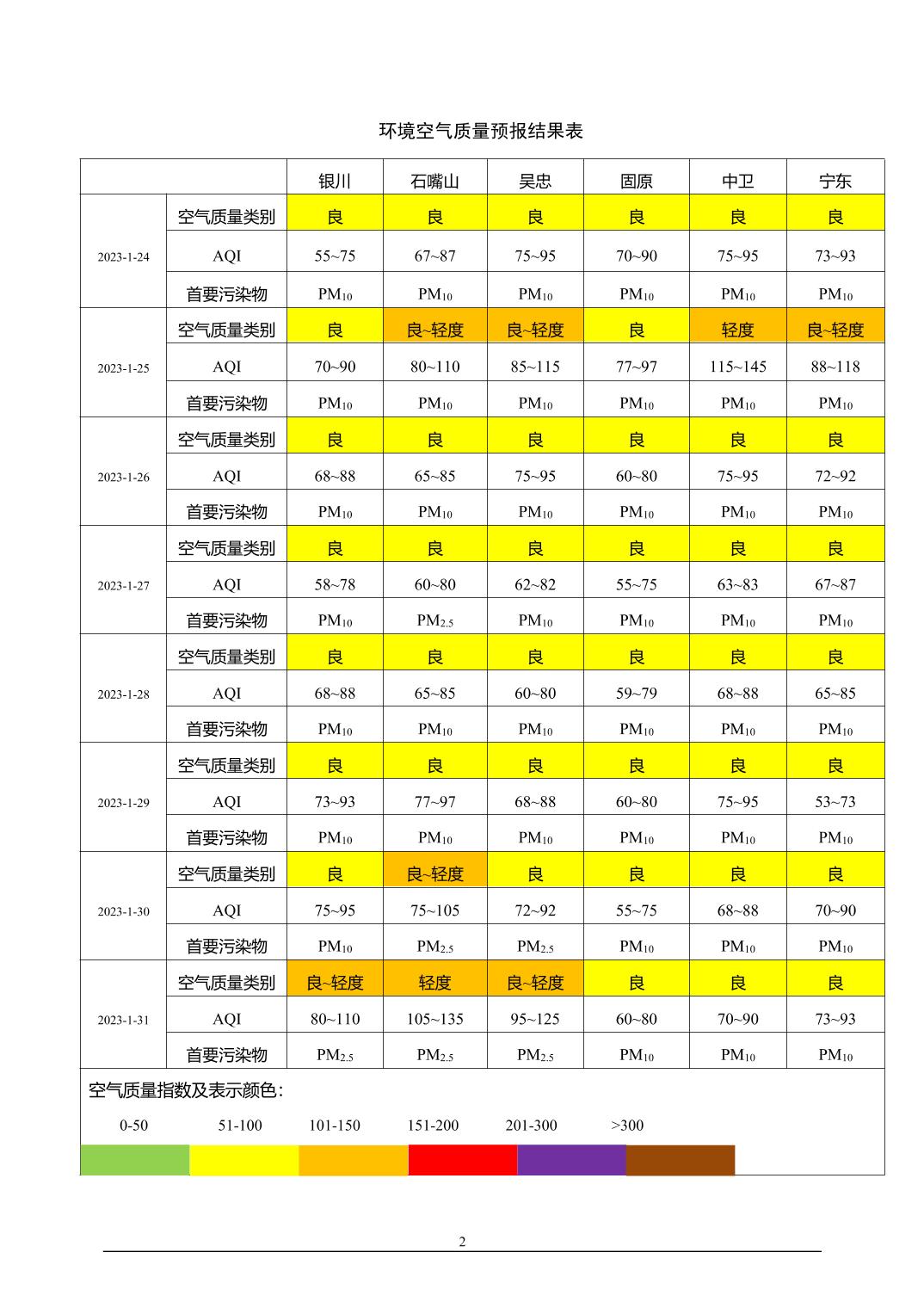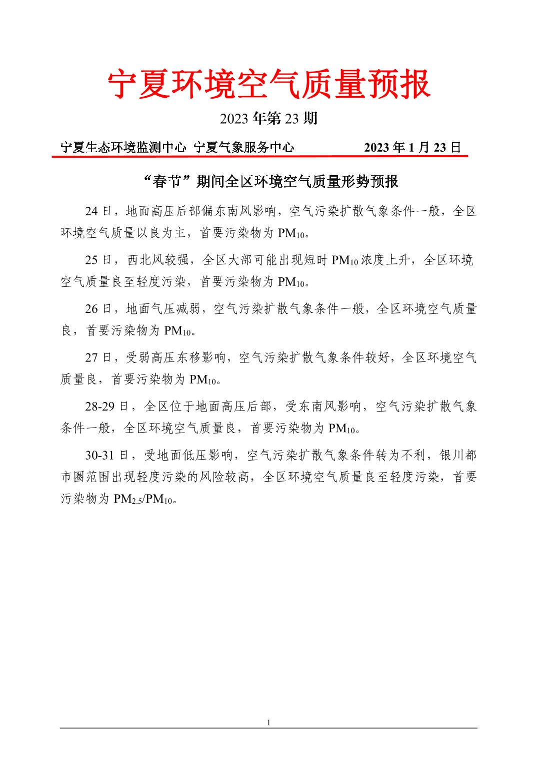 2023年1月23日宁夏环境空气质量预报信息
