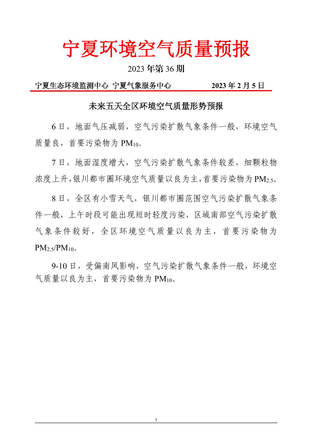 2023年2月5日宁夏环境空气质量预报信息
