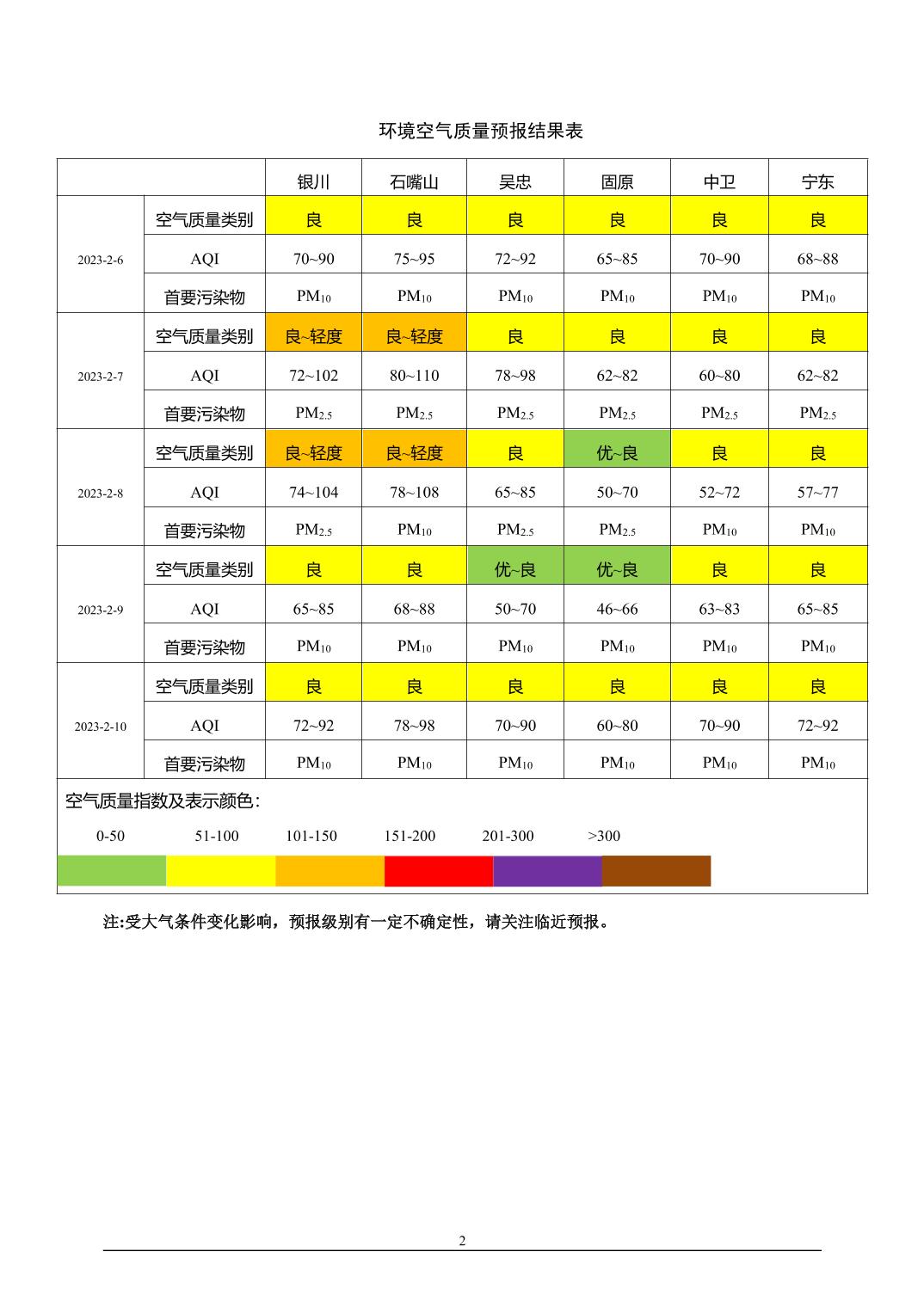 > 环境空气质量预报