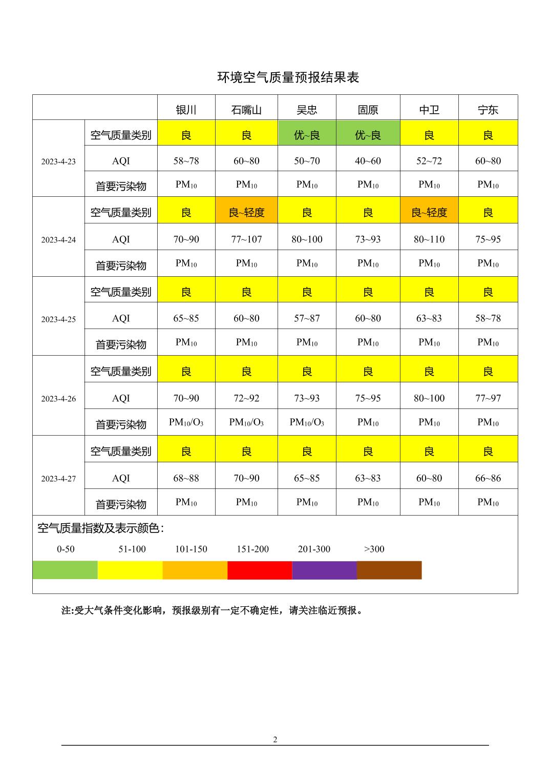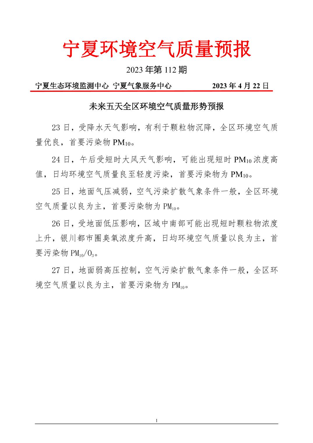 2023年4月22日宁夏环境空气质量预报信息
