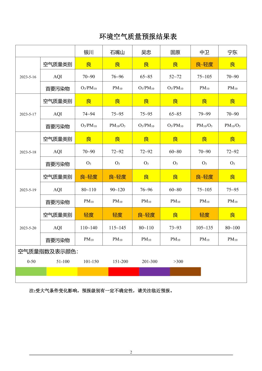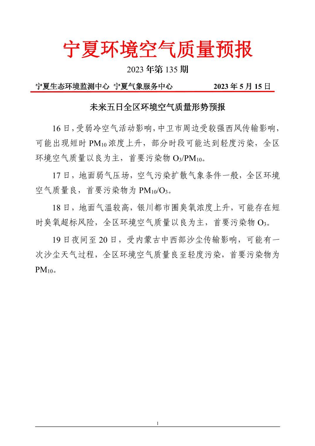 2023年5月15日宁夏环境空气质量预报信息