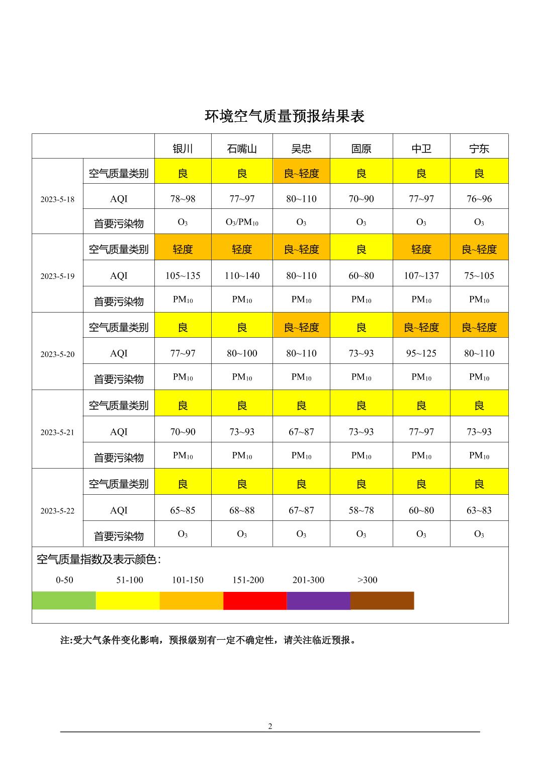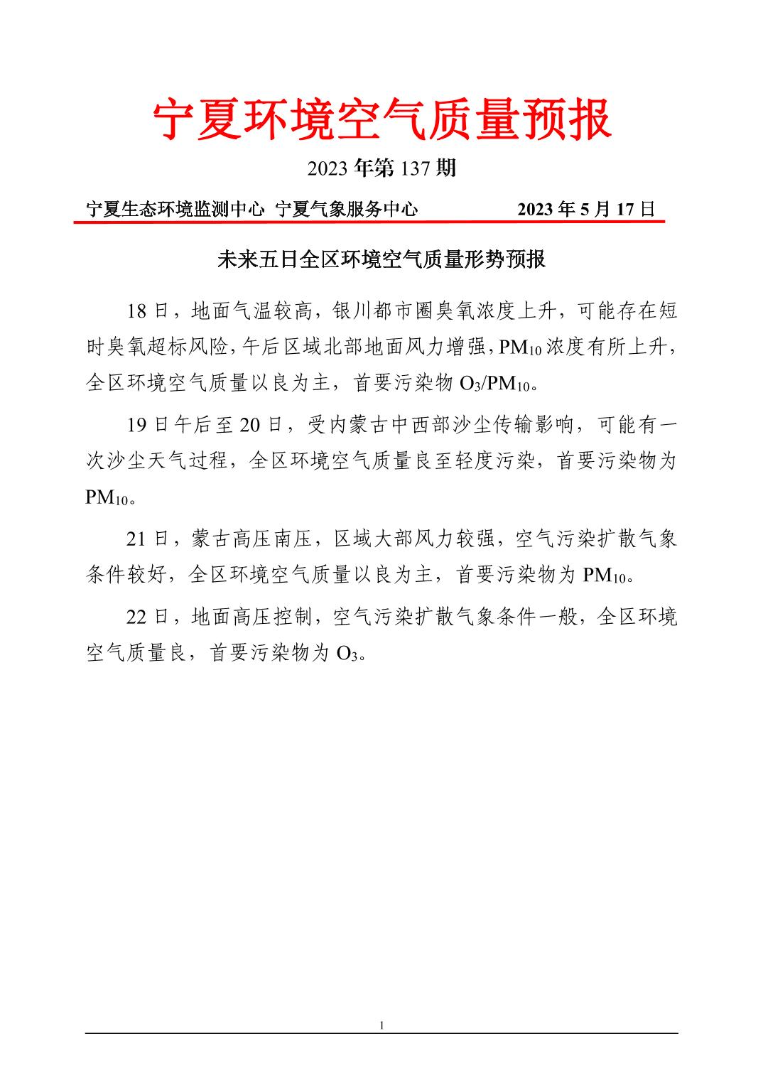 2023年5月17日宁夏环境空气质量预报信息