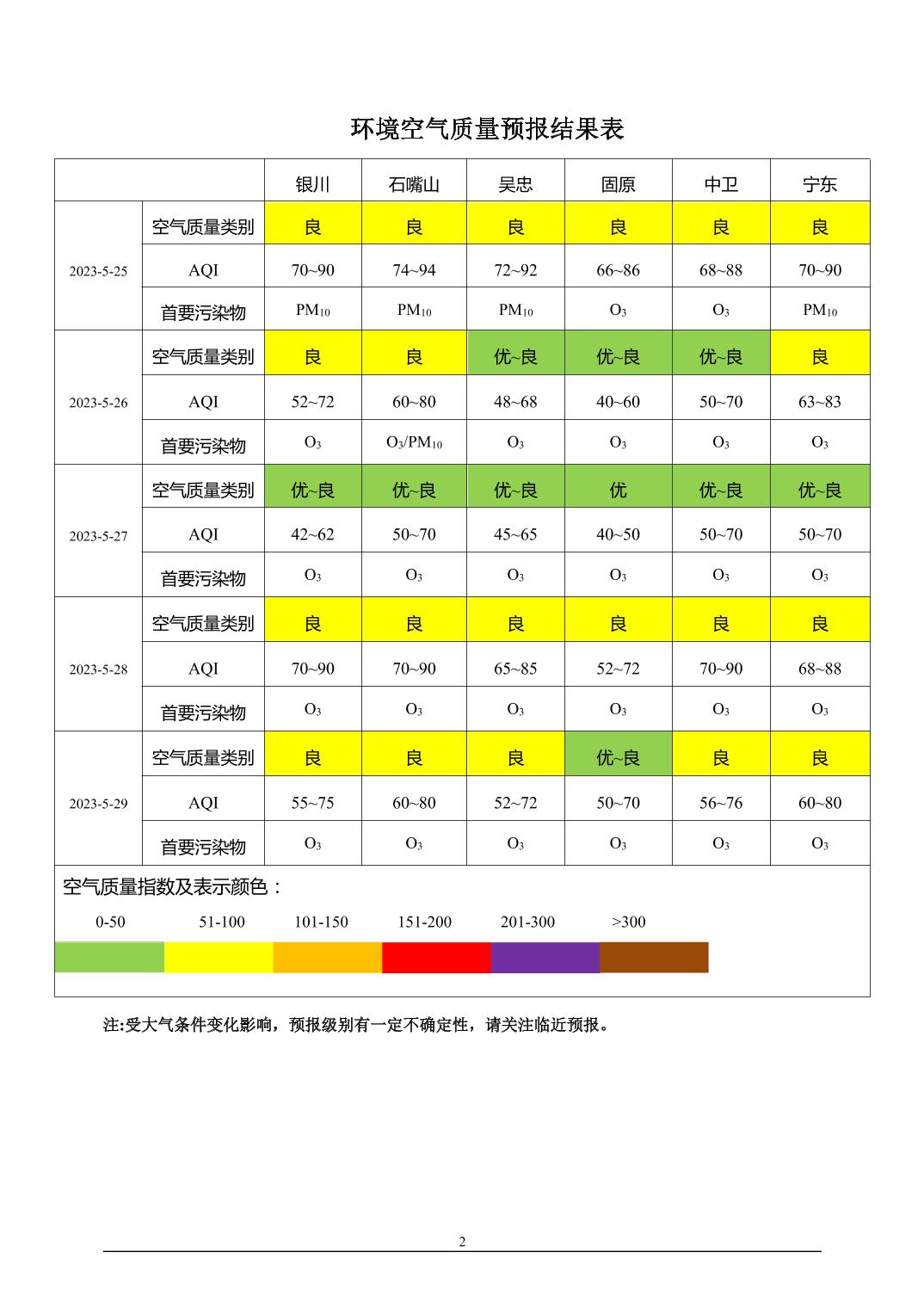 > 环境空气质量预报