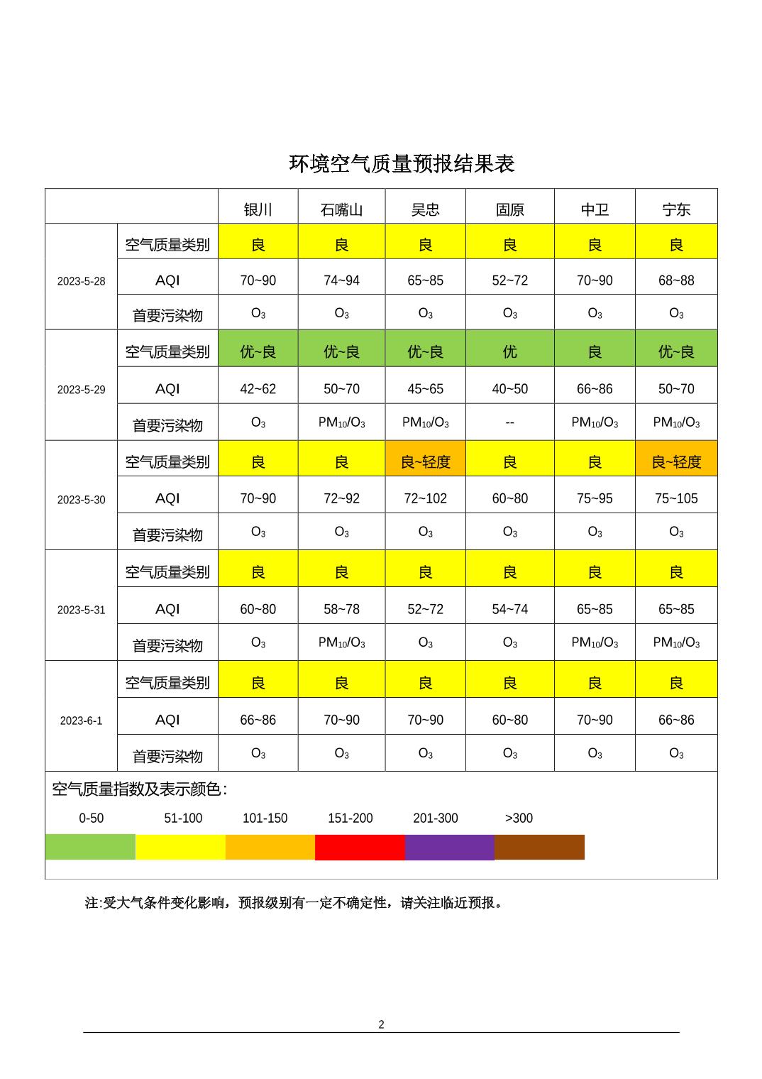 2023年5月27日宁夏环境空气质量预报信息