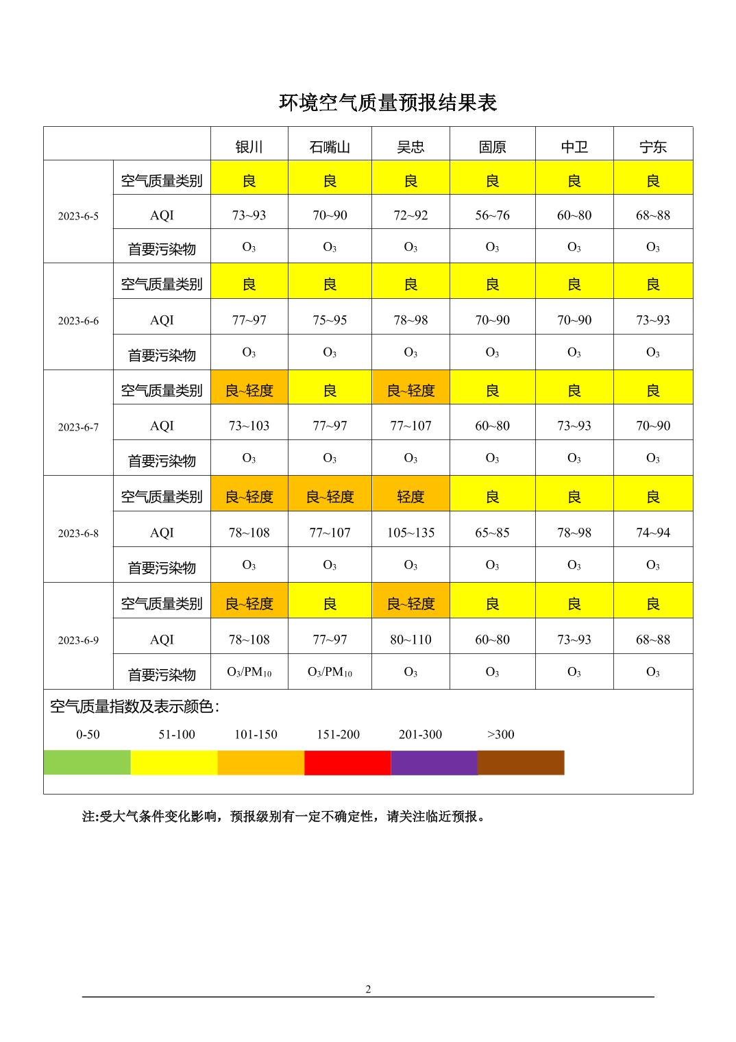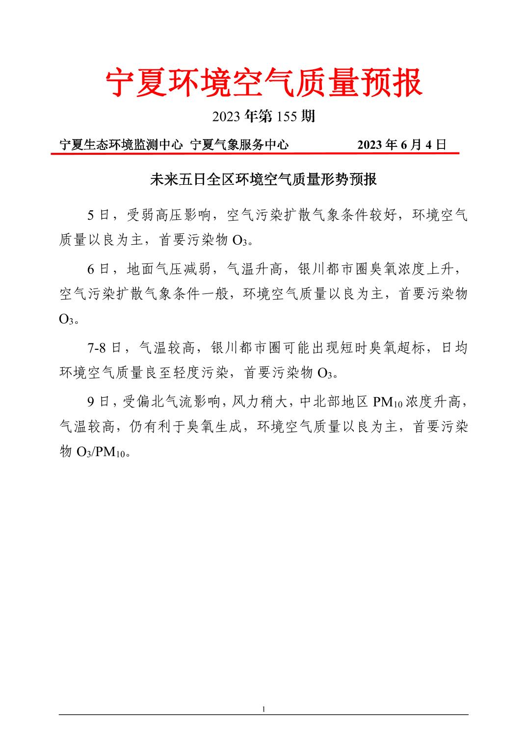 2023年6月4日宁夏环境空气质量预报信息