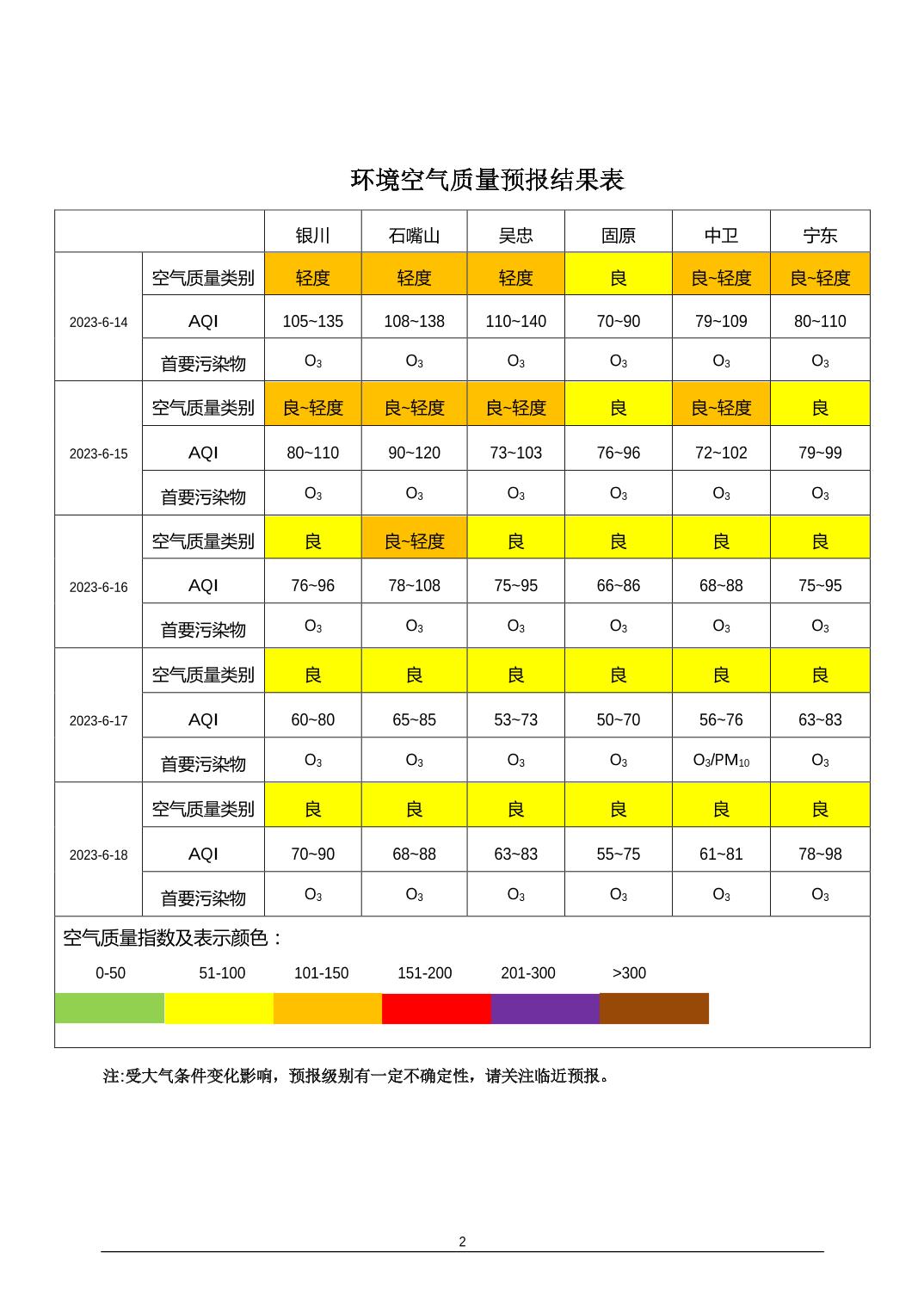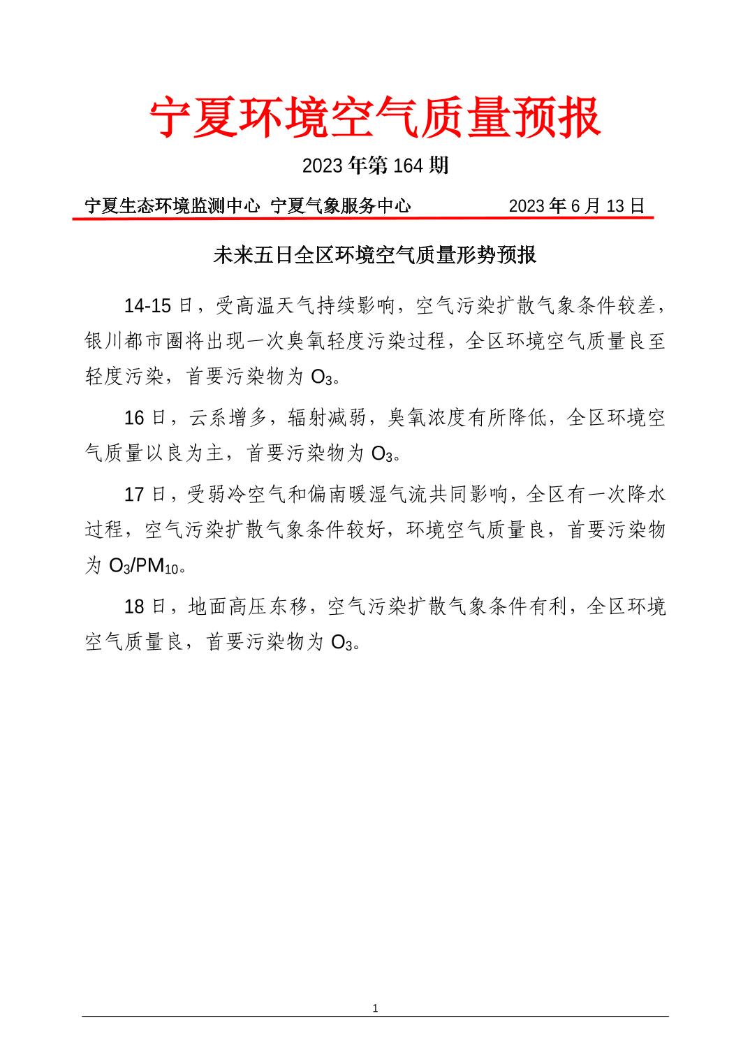 2023年6月13日宁夏环境空气质量预报信息