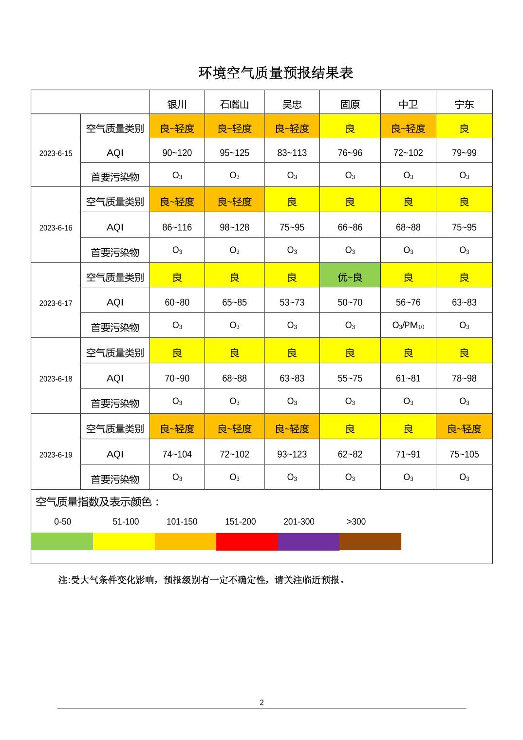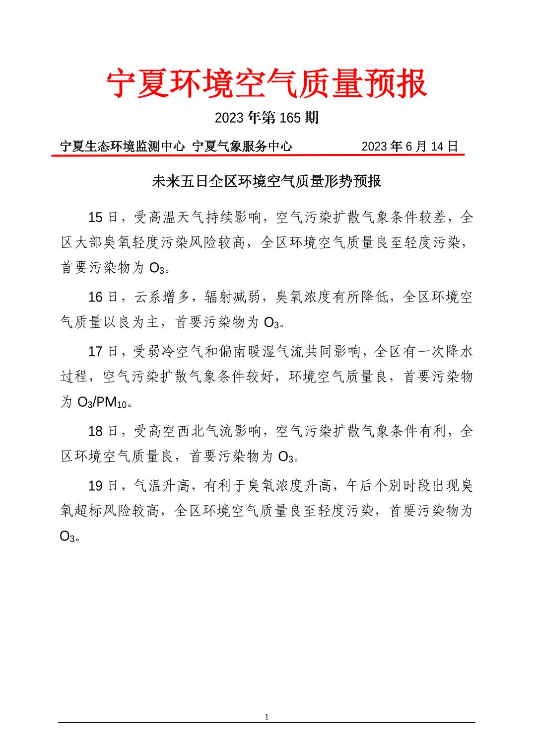 2023年6月14日宁夏环境空气质量预报信息