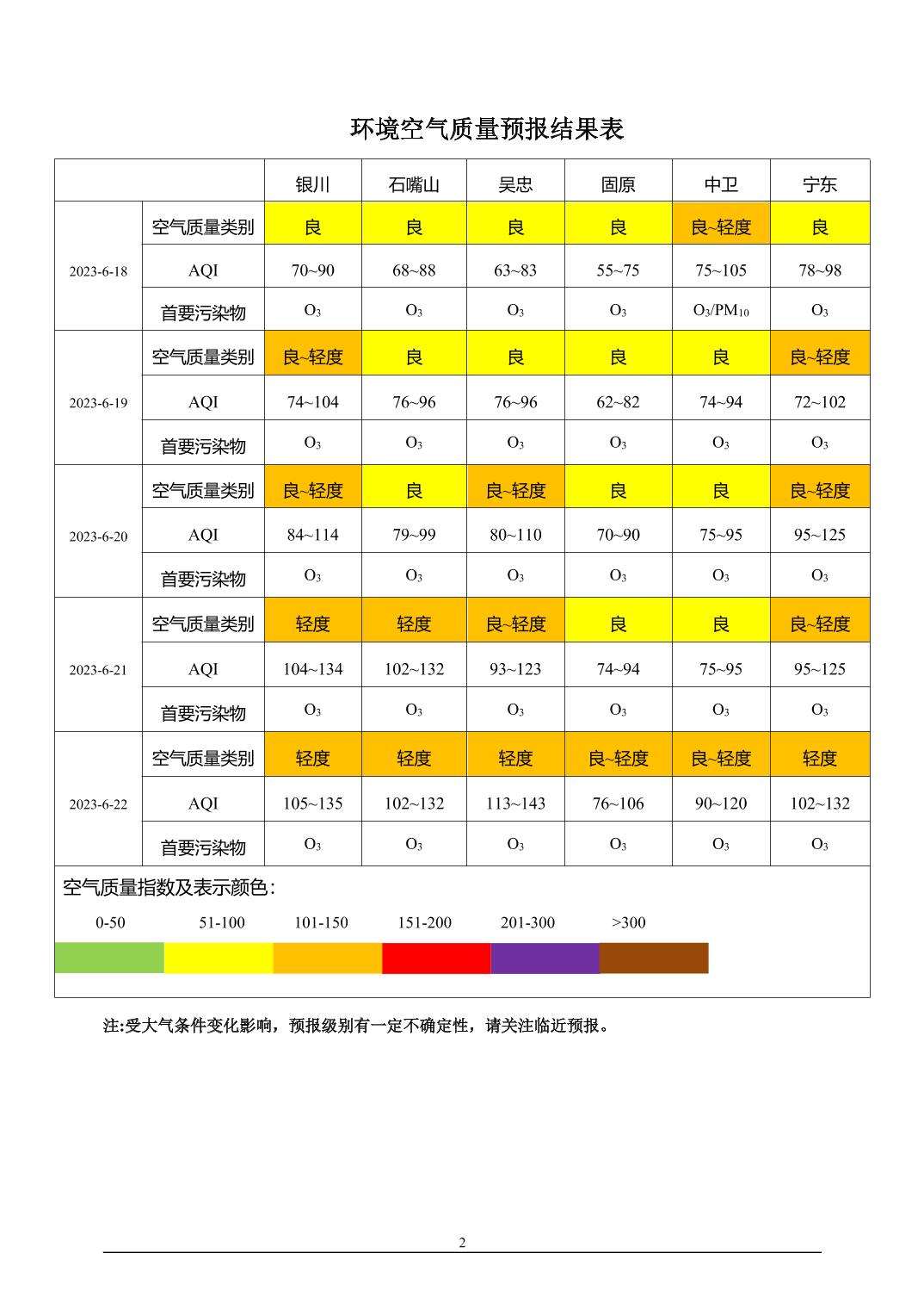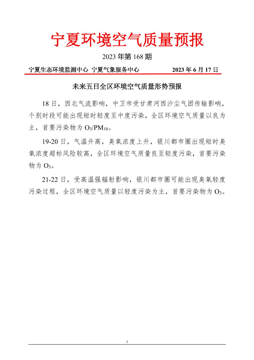 2023年6月17日宁夏环境空气质量预报信息