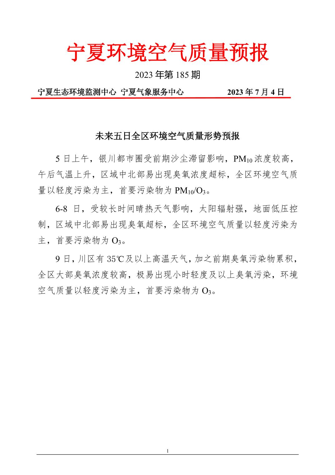 2023年7月4日宁夏环境空气质量预报信息