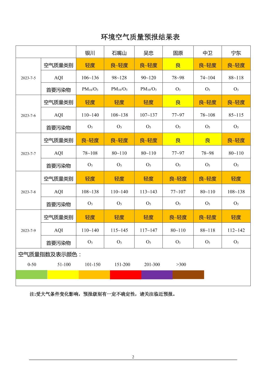 > 环境空气质量预报