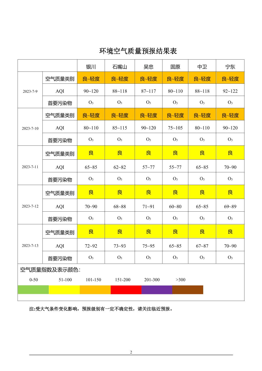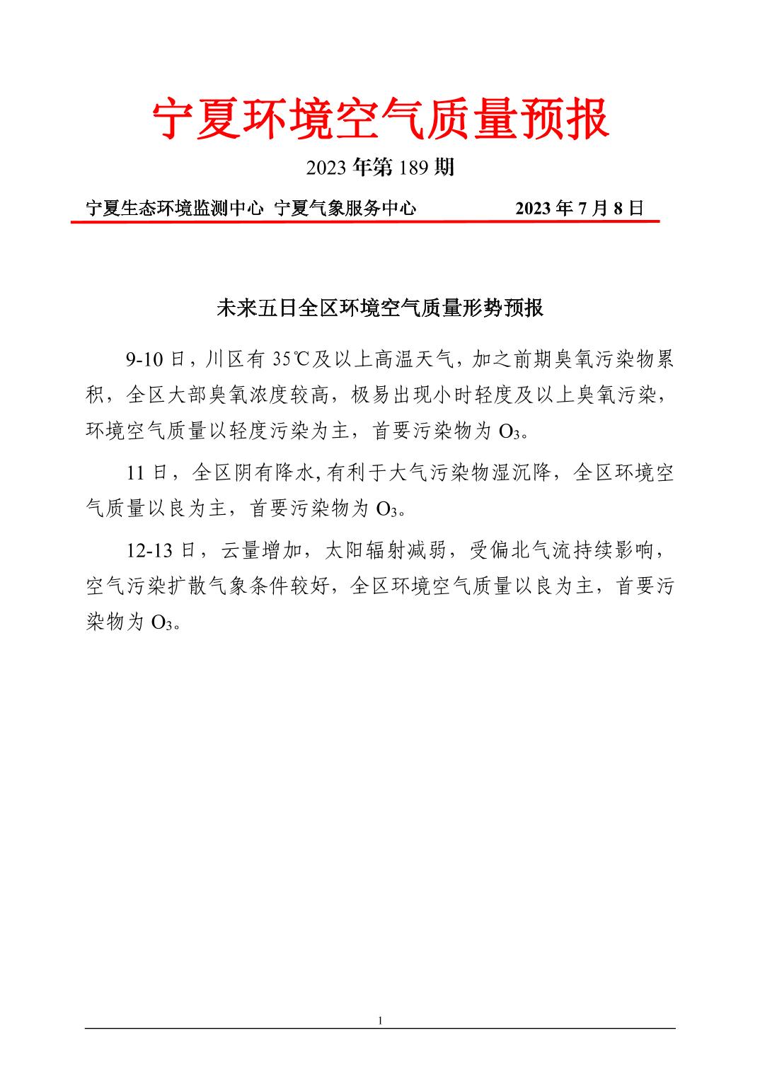 2023年7月8日宁夏环境空气质量预报信息