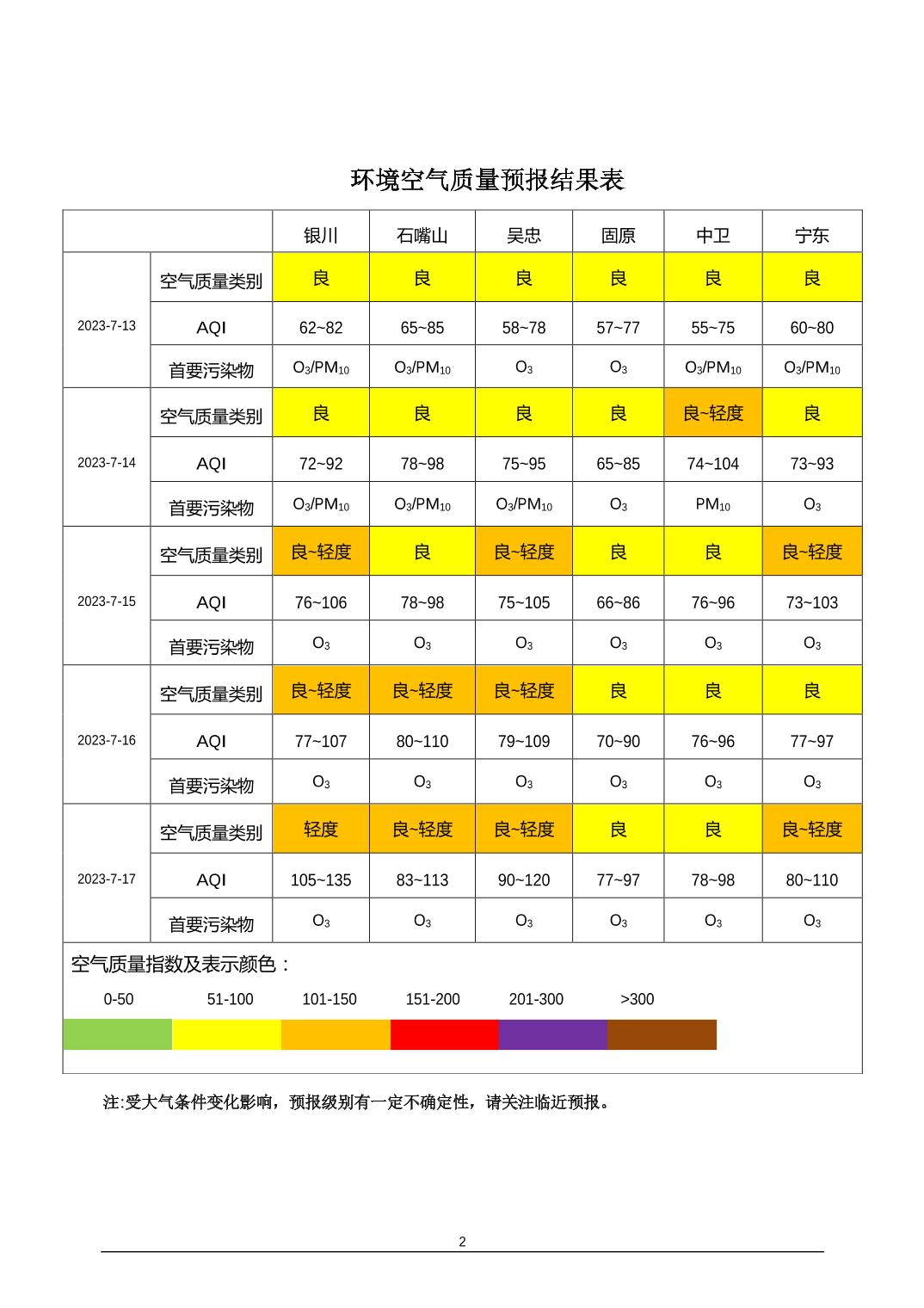 > 环境空气质量预报