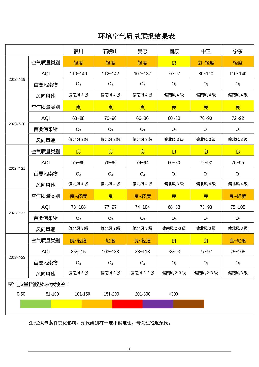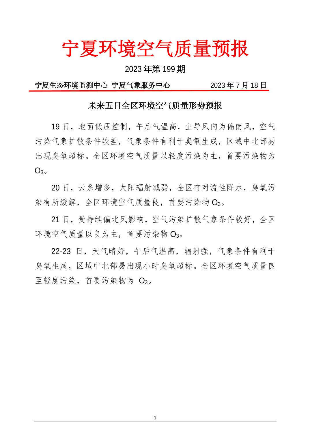 2023年7月18日宁夏环境空气质量预报信息