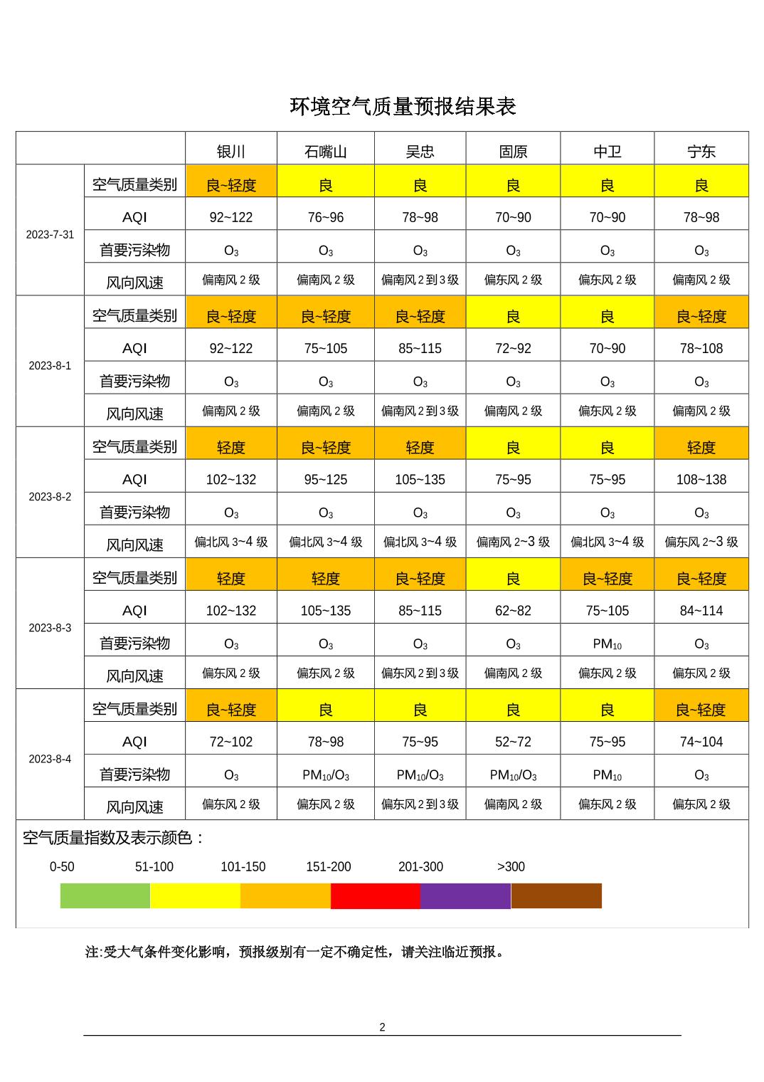 > 环境空气质量预报