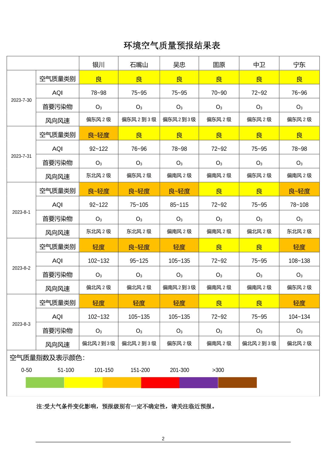 > 环境空气质量预报