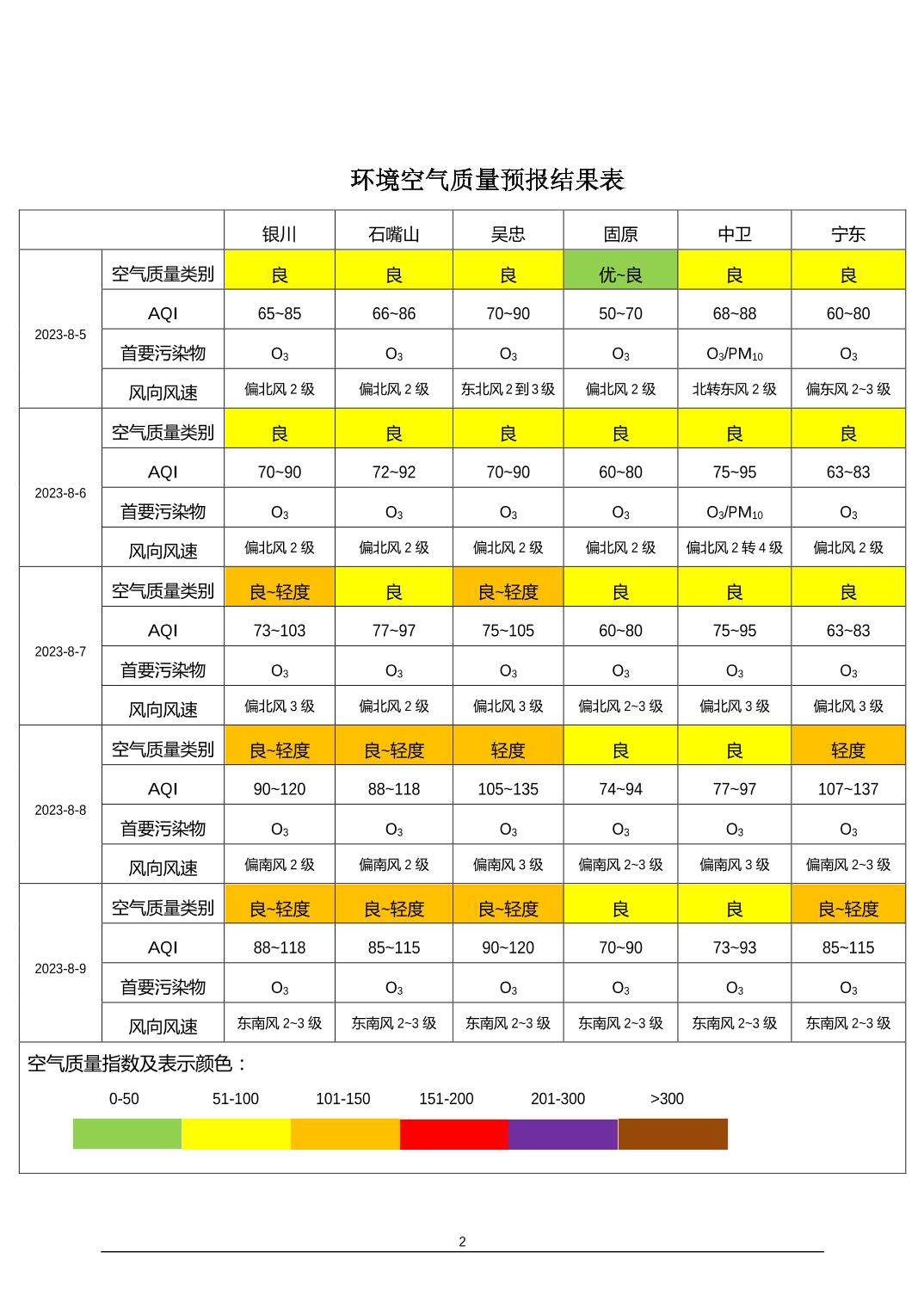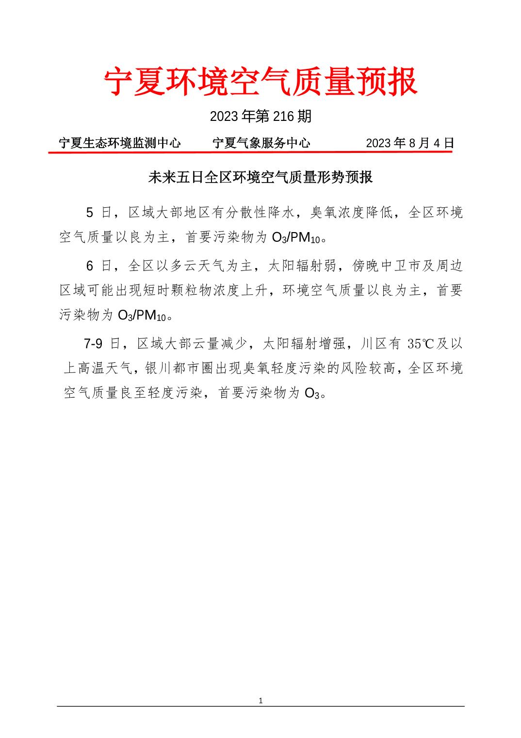 2023年8月4日宁夏环境空气质量预报信息