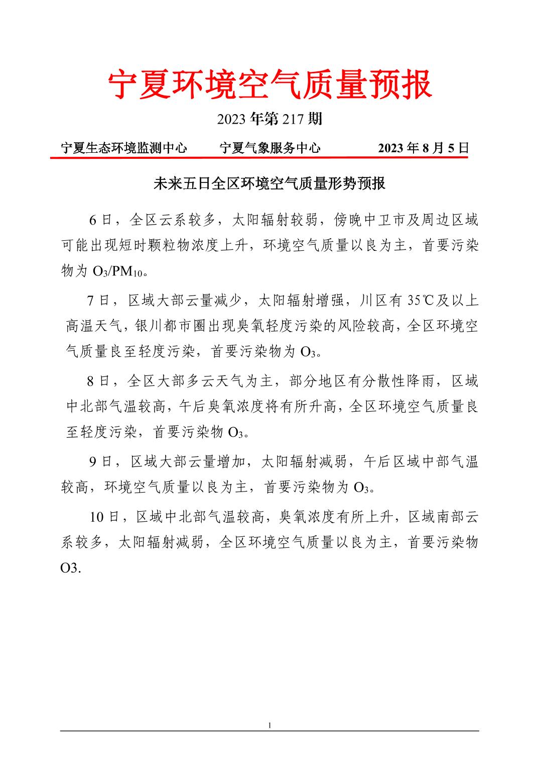 2023年8月5日宁夏环境空气质量预报信息