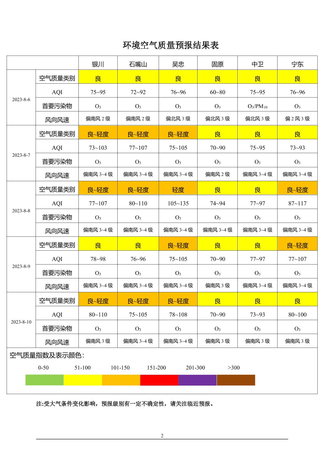 > 环境空气质量预报