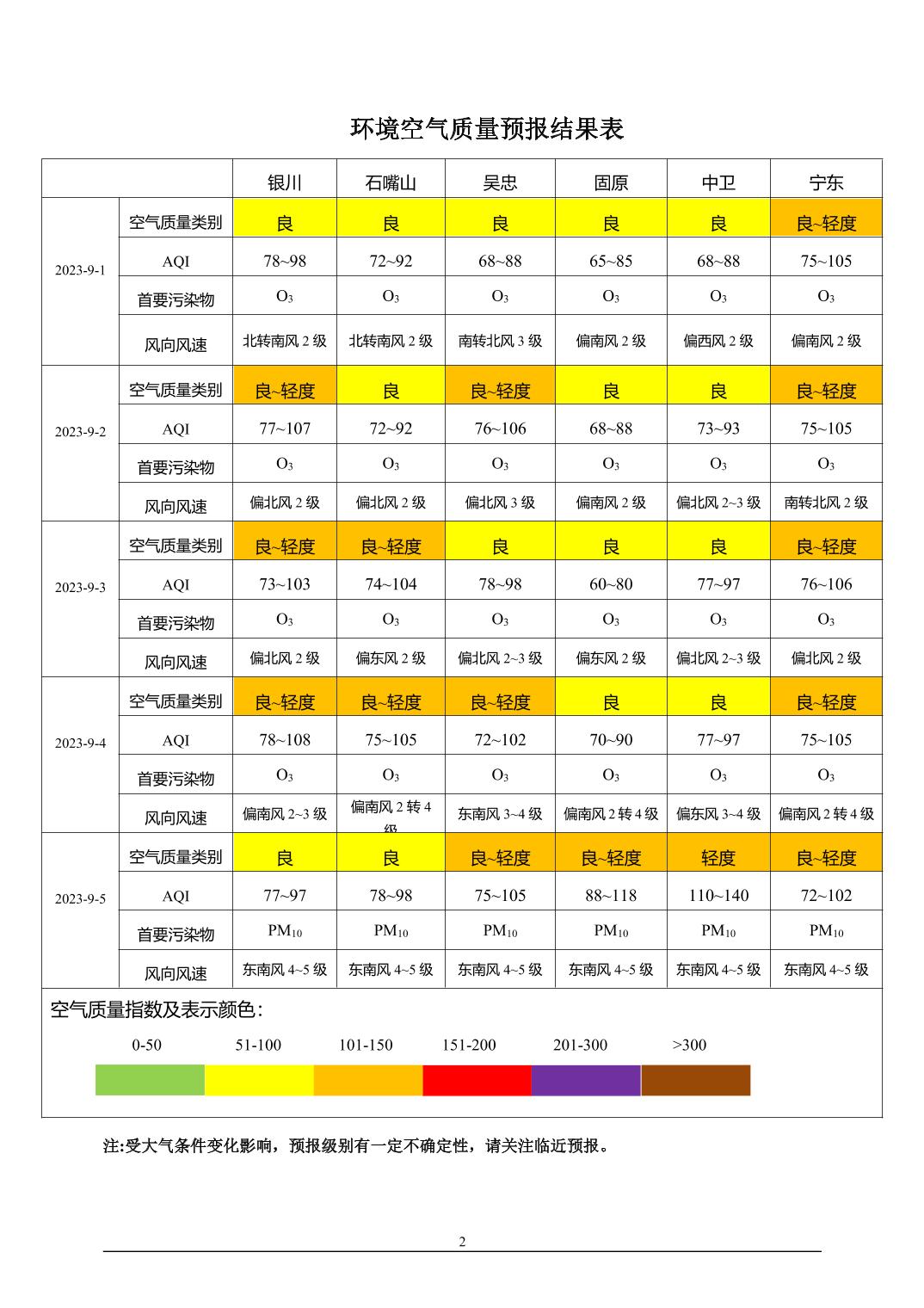 > 环境空气质量预报