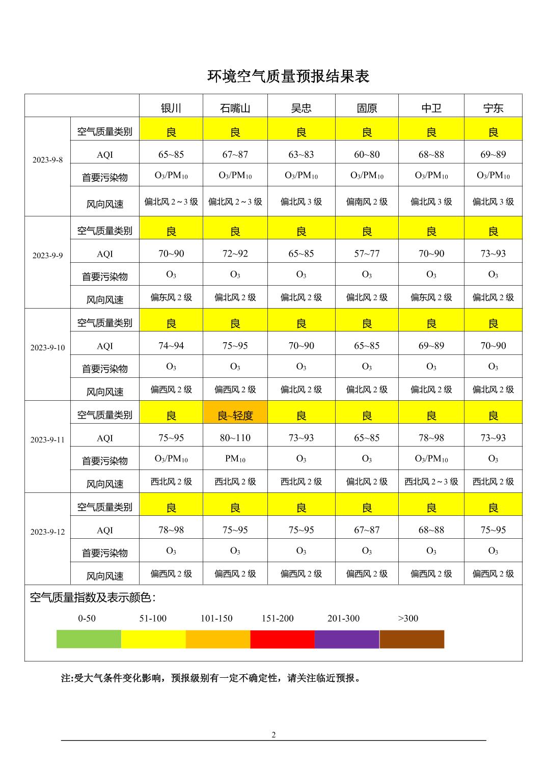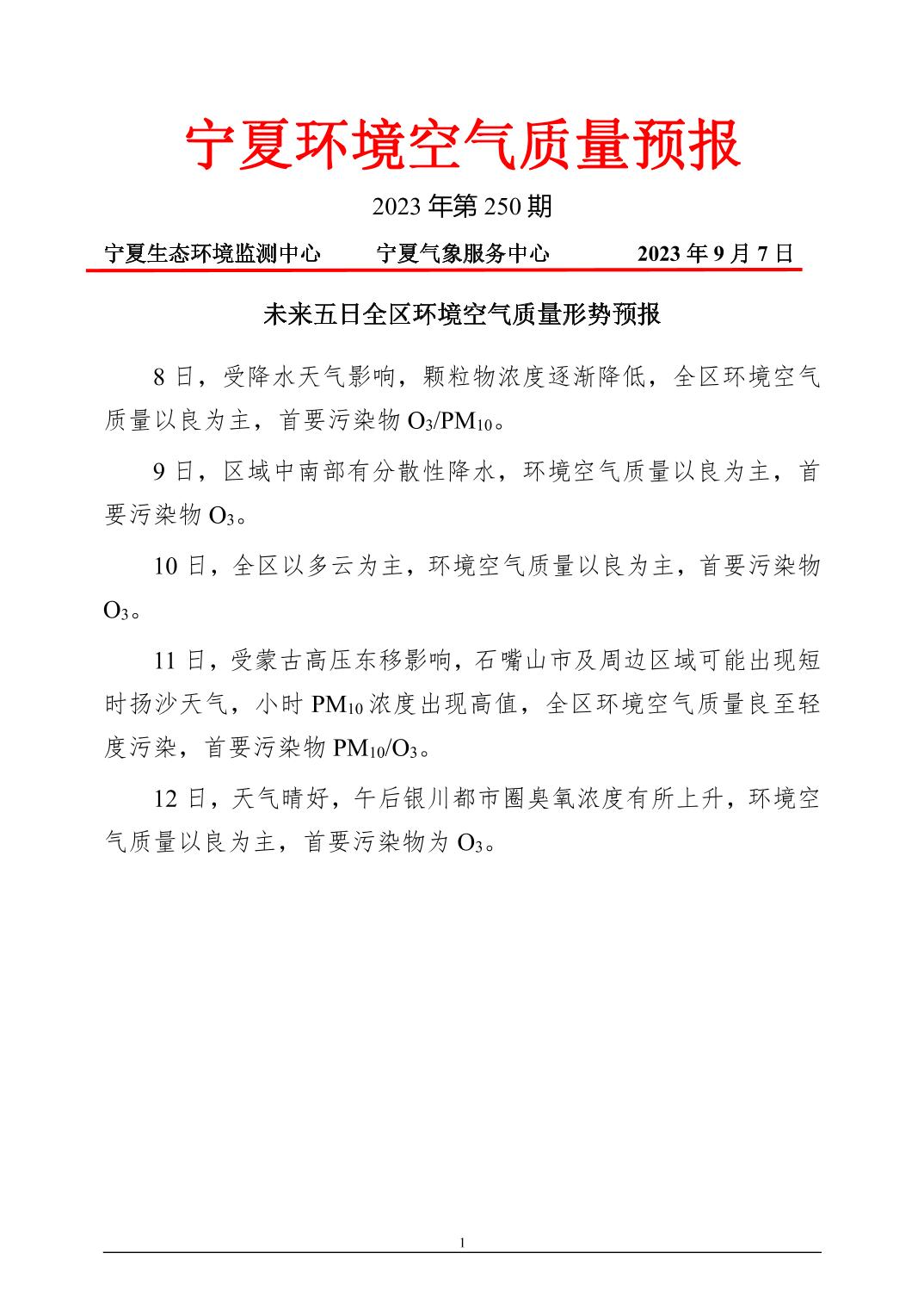 2023年9月7日宁夏环境空气质量预报信息