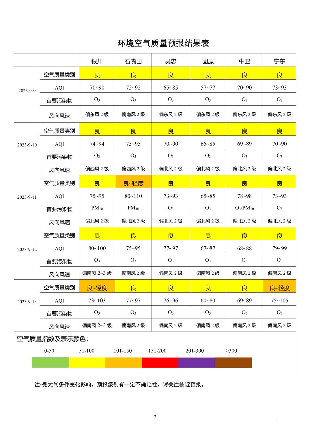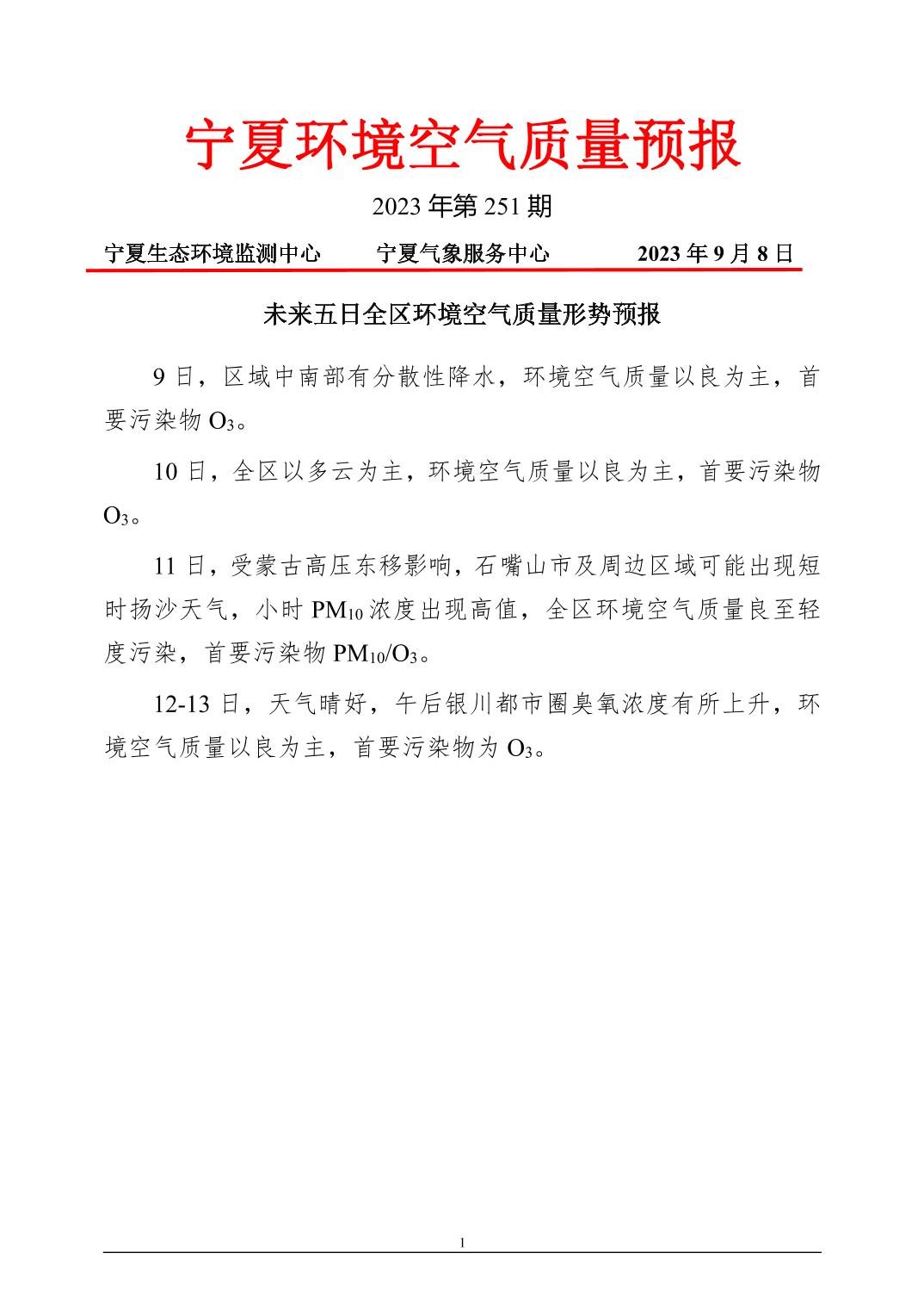 2023年9月8日宁夏环境空气质量预报信息