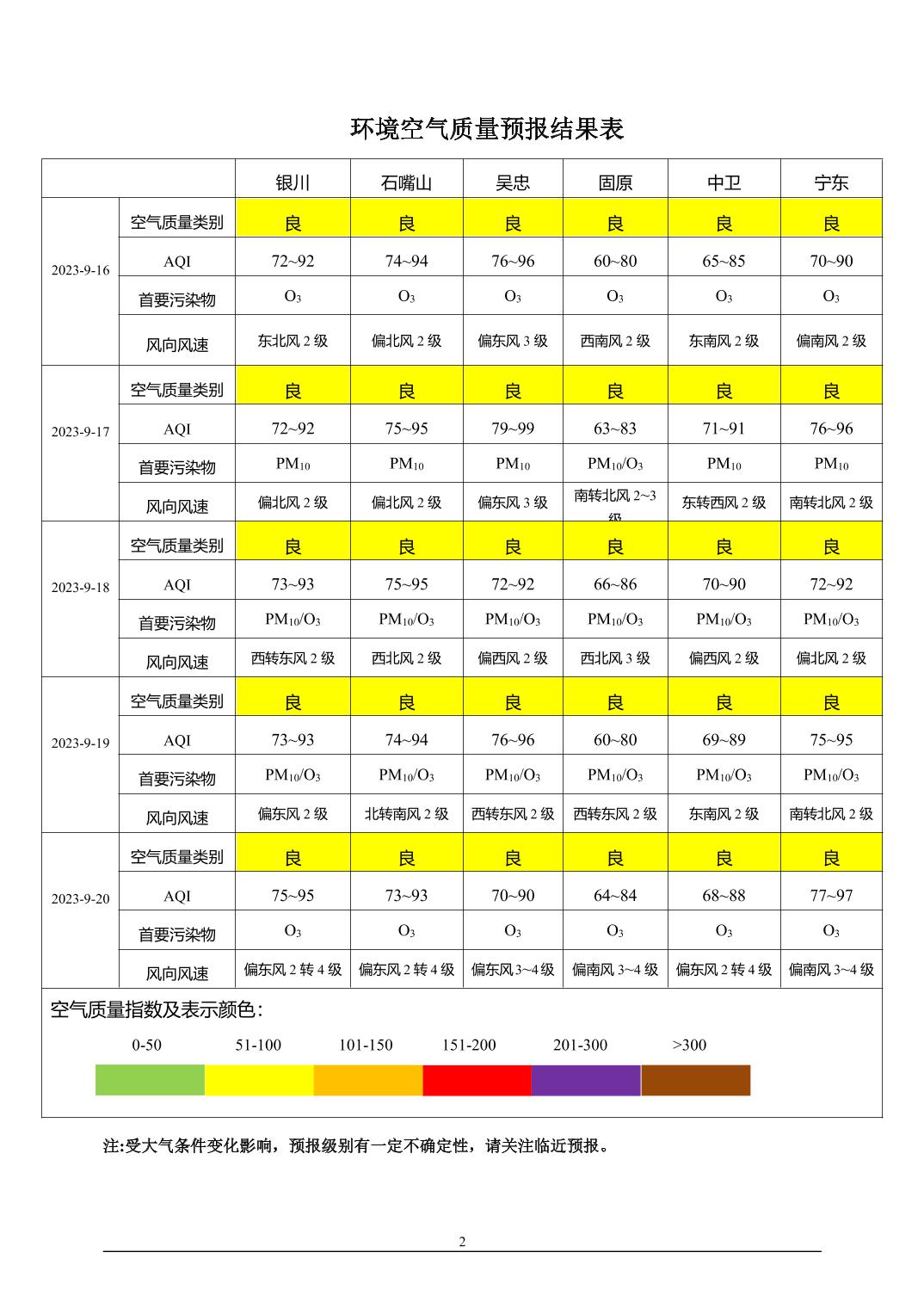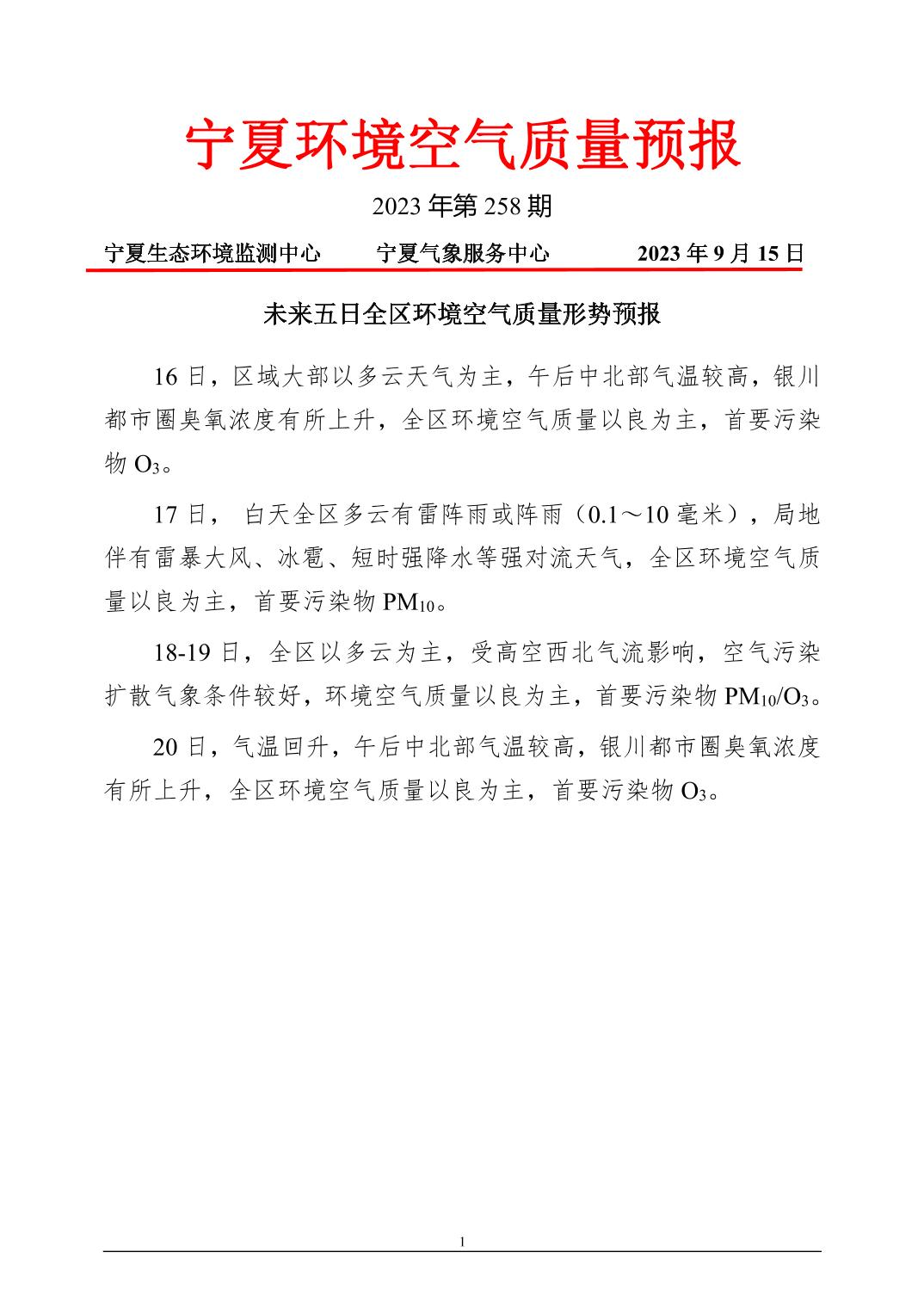 2023年9月15日宁夏环境空气质量预报信息