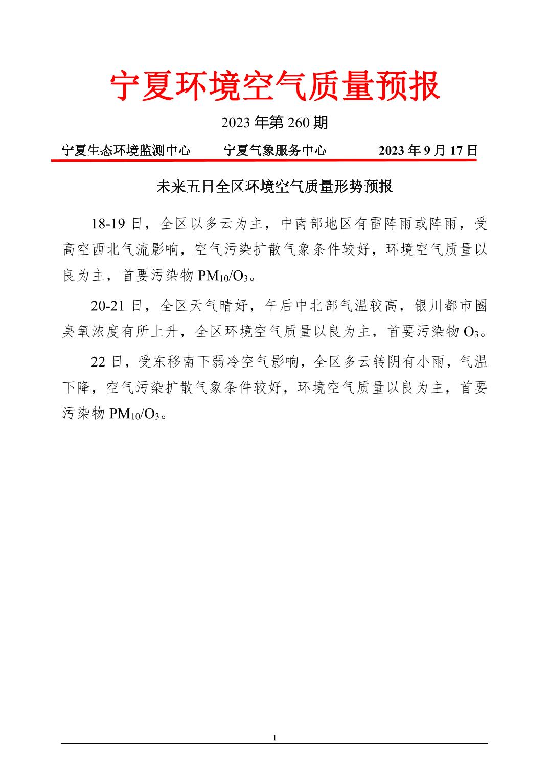 2023年9月17日宁夏环境空气质量预报信息