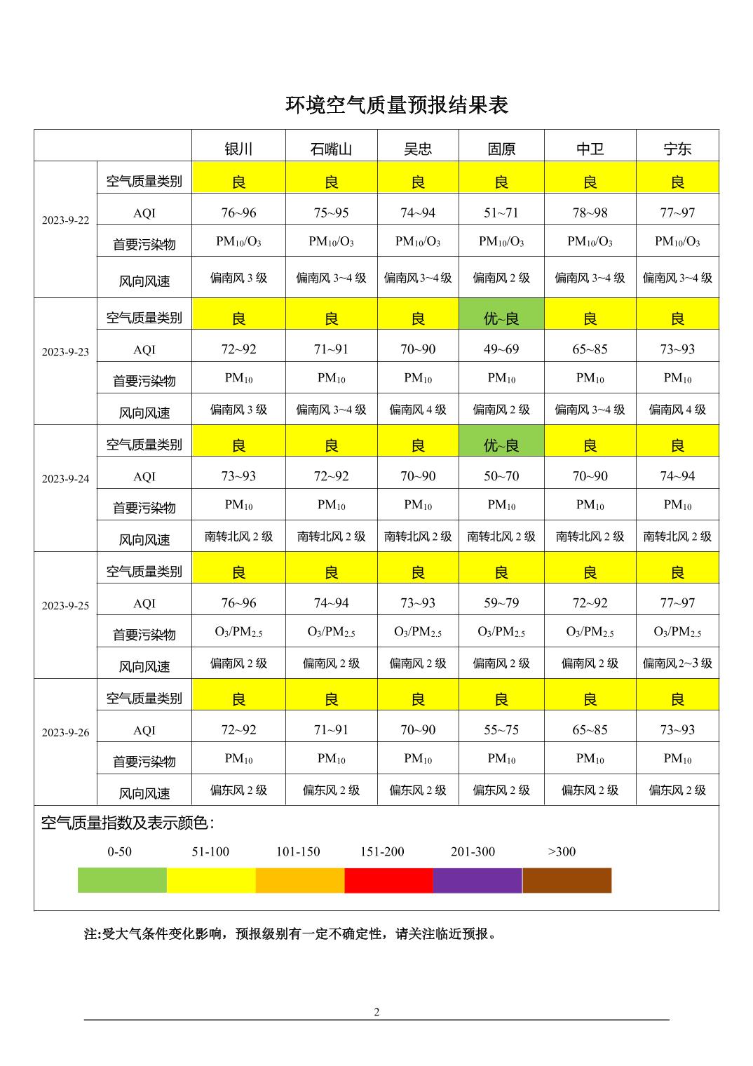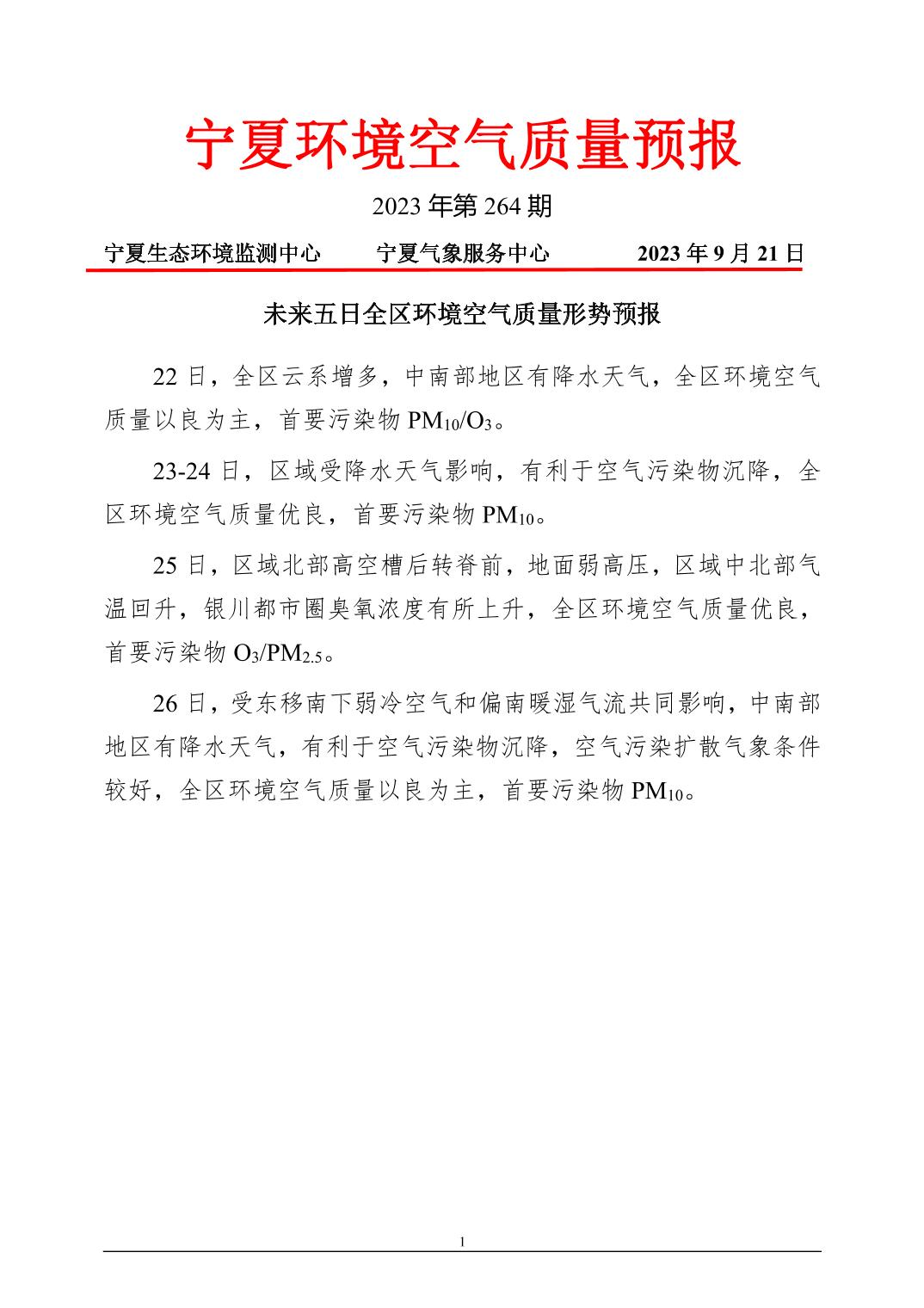 2023年9月21日宁夏环境空气质量预报信息