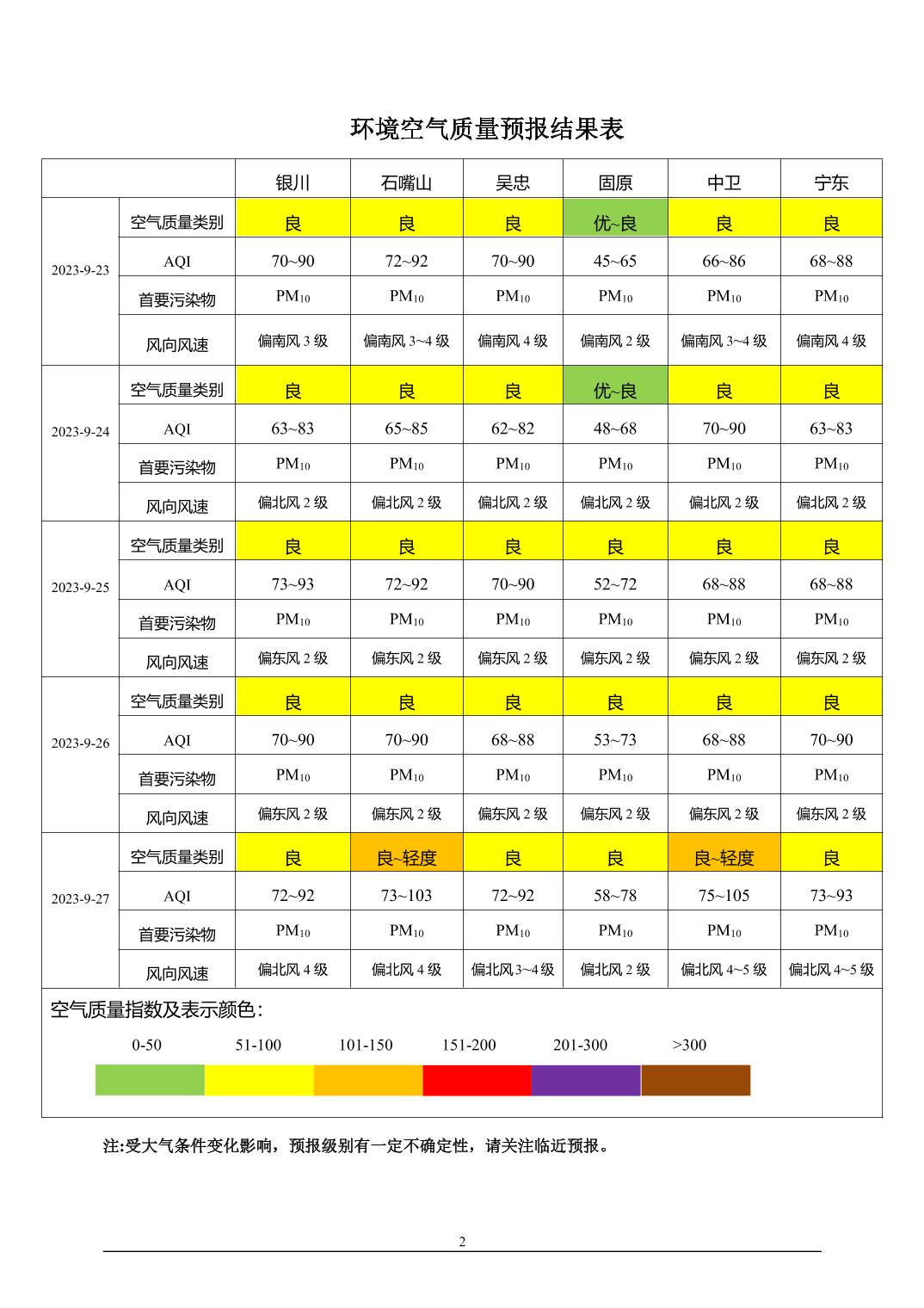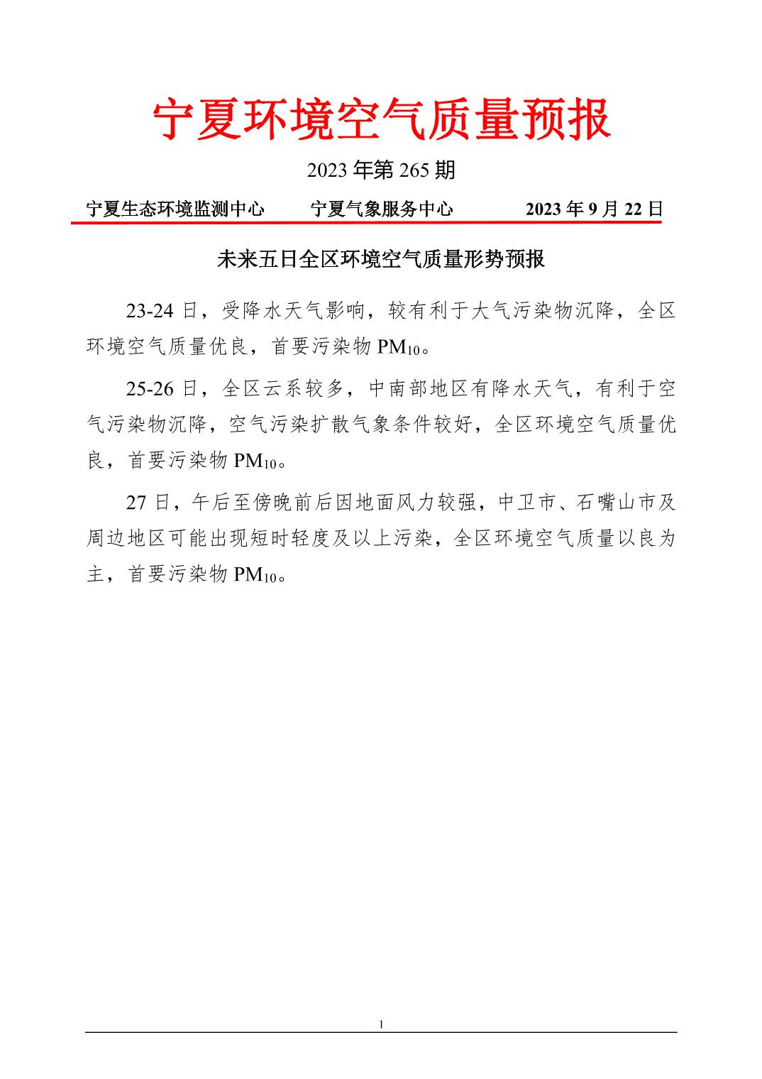 2023年9月22日宁夏环境空气质量预报信息