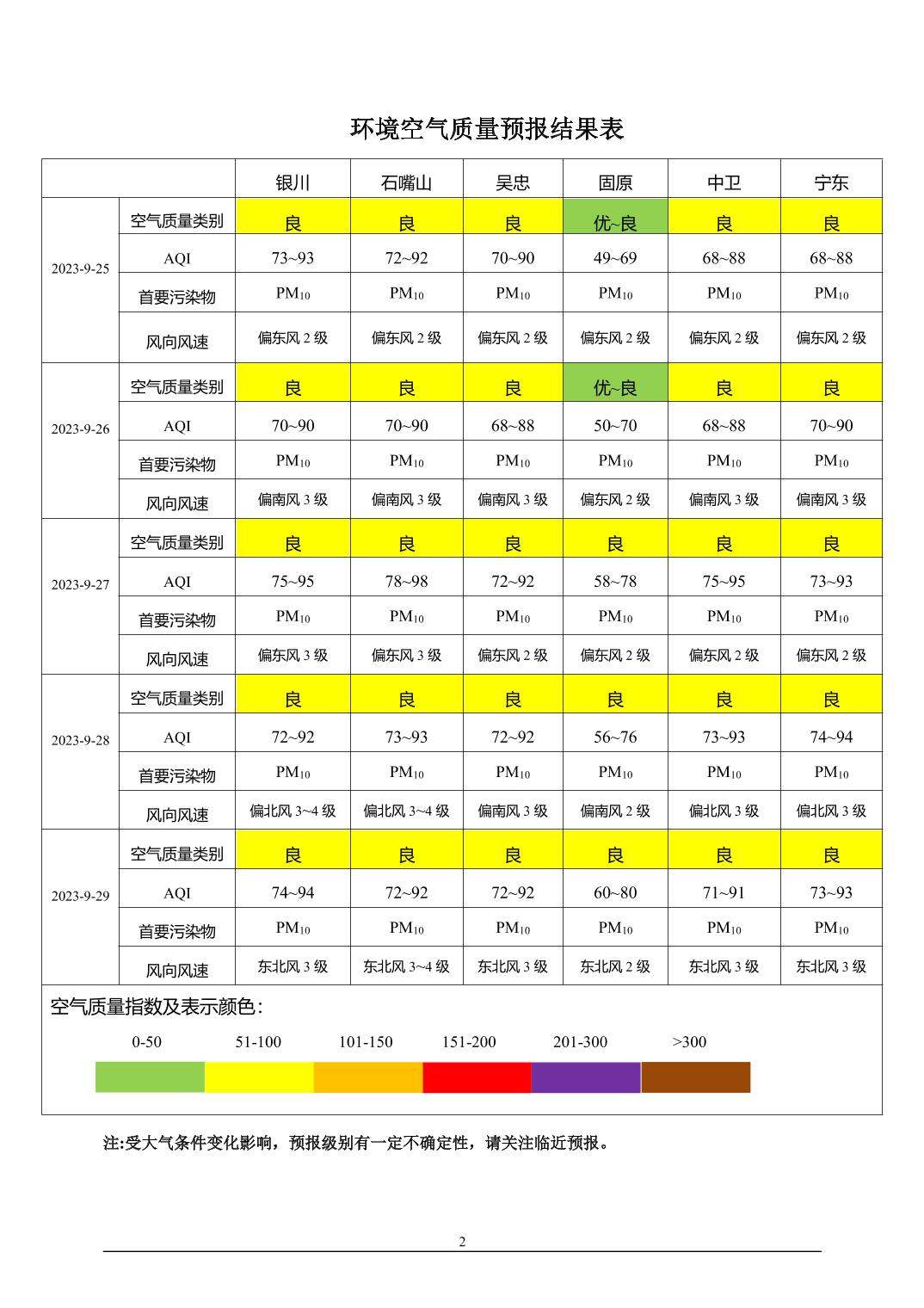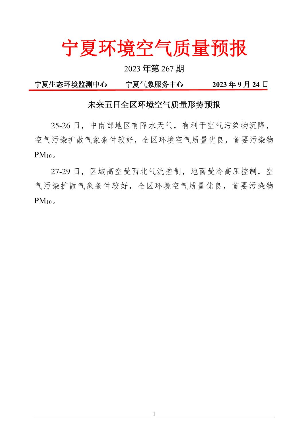 2023年9月24日宁夏环境空气质量预报信息