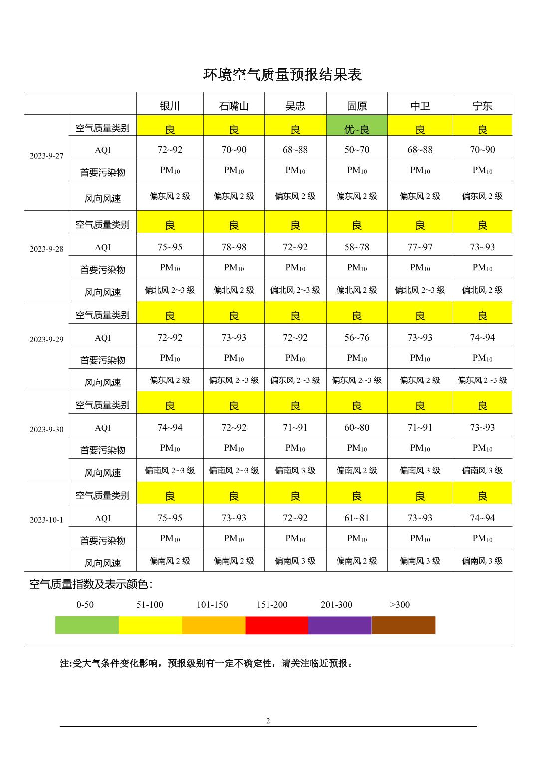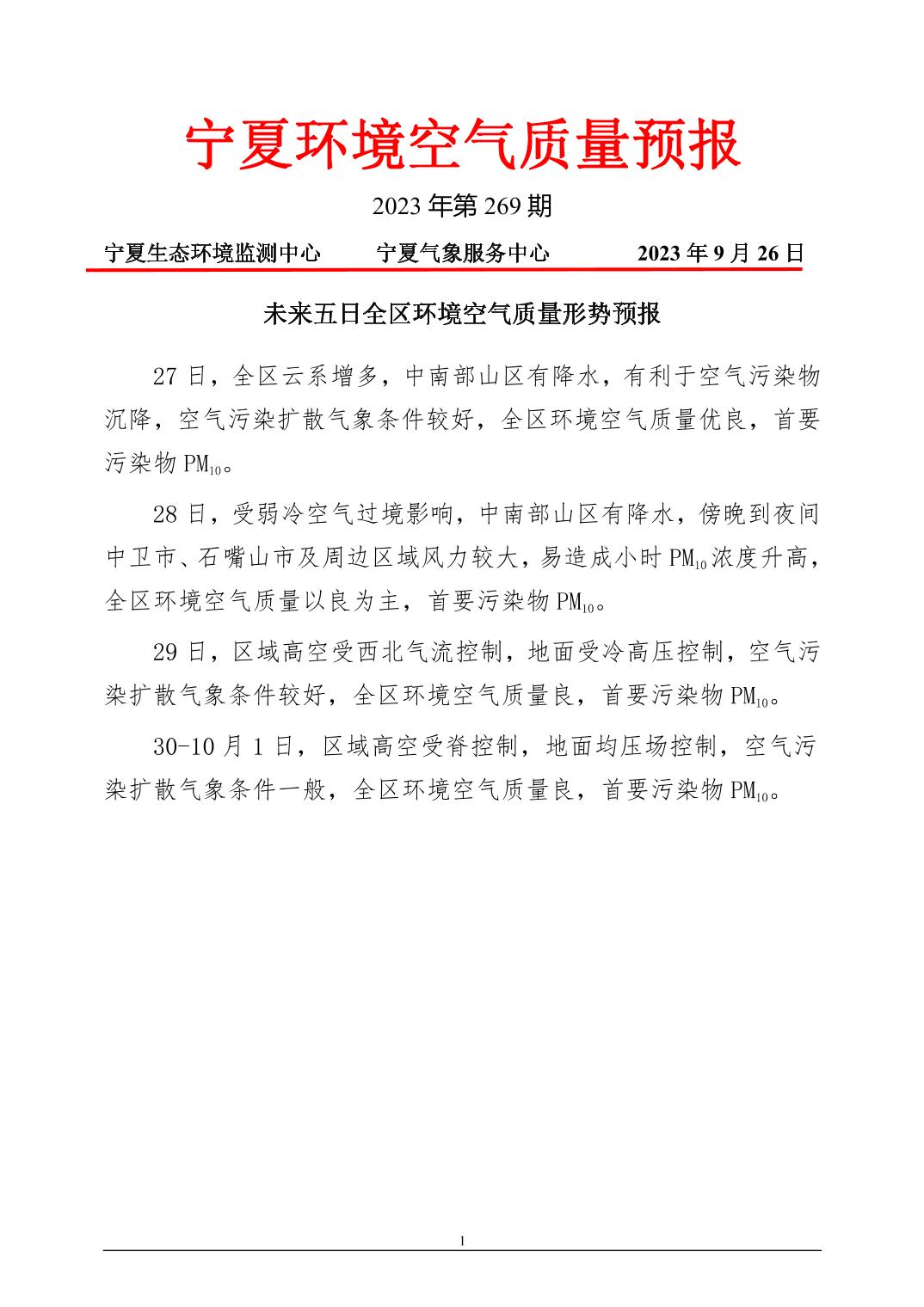 2023年9月26日宁夏环境空气质量预报信息