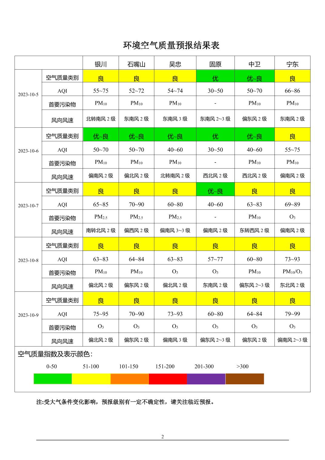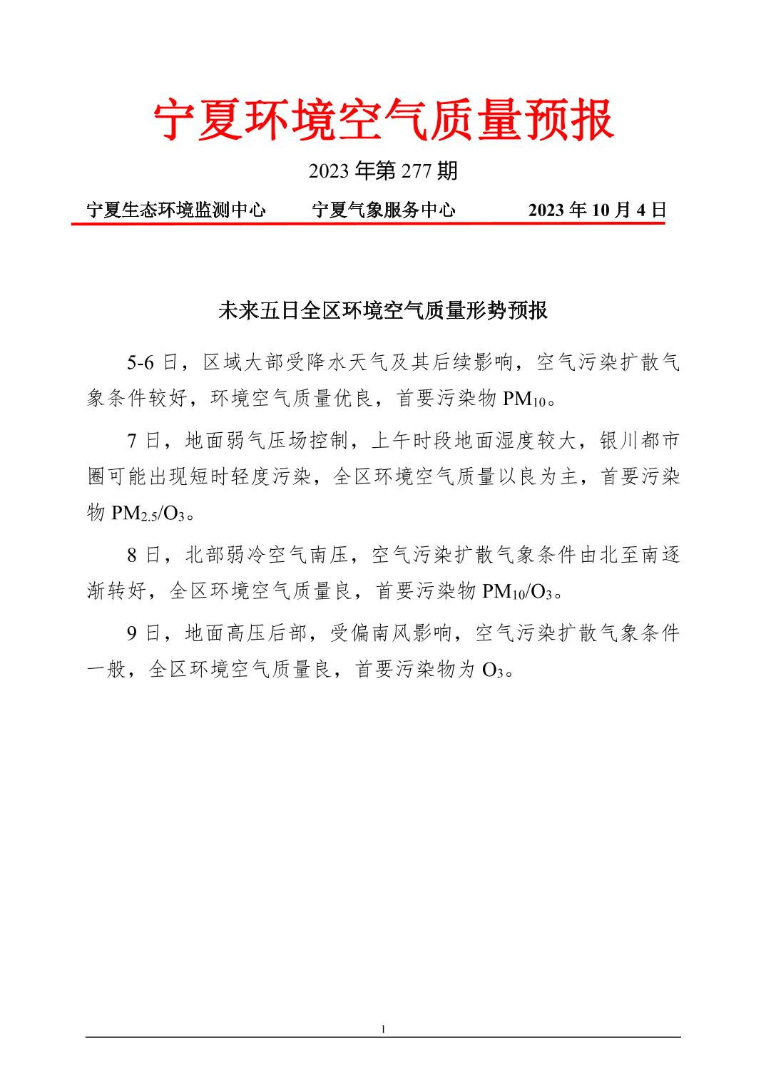 2023年10月4日宁夏环境空气质量预报信息