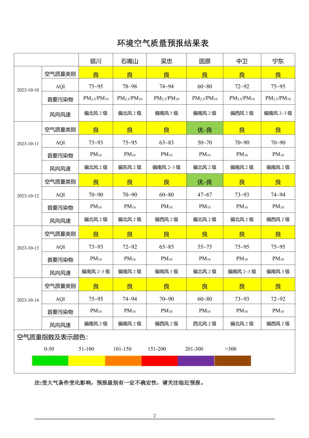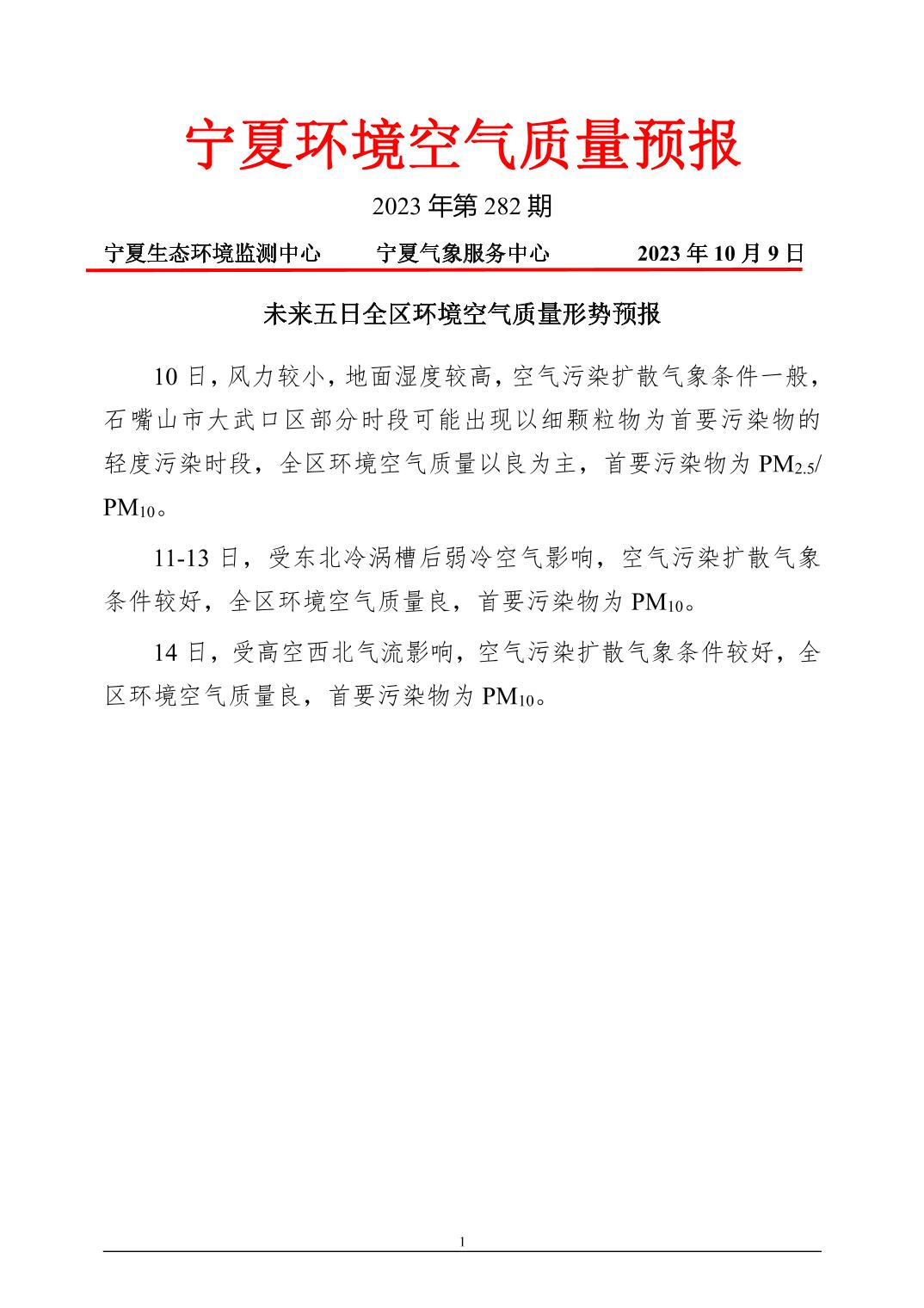 2023年10月9日宁夏环境空气质量预报信息