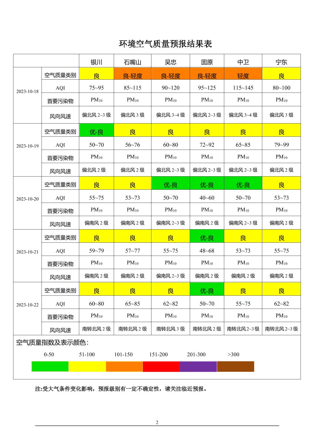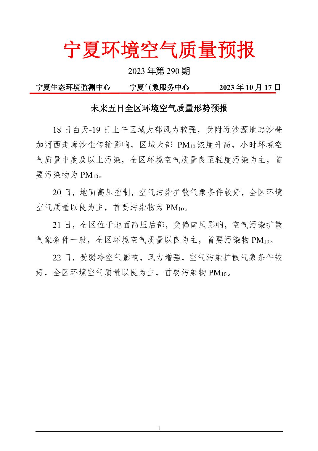 2023年10月17日宁夏环境空气质量预报信息