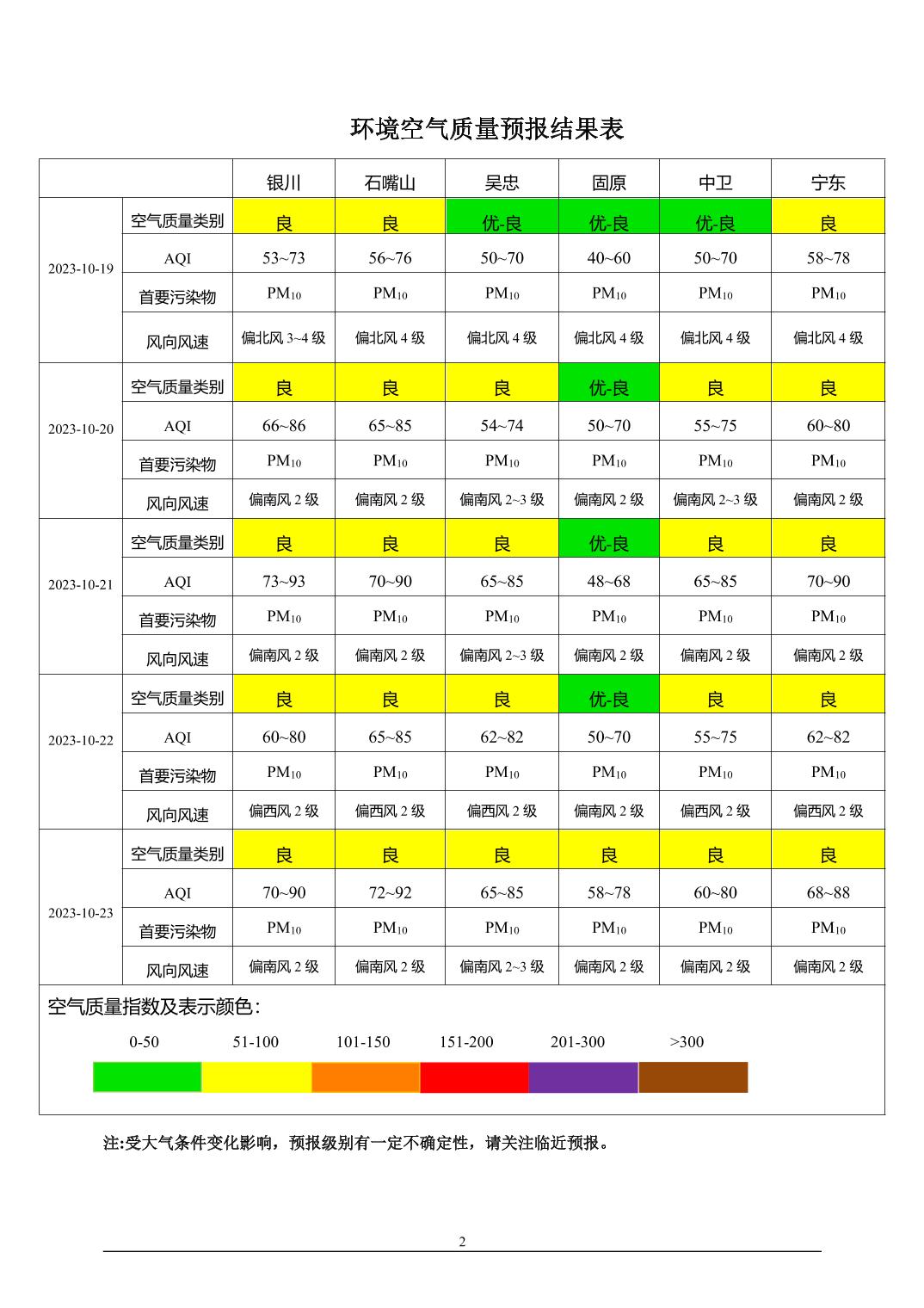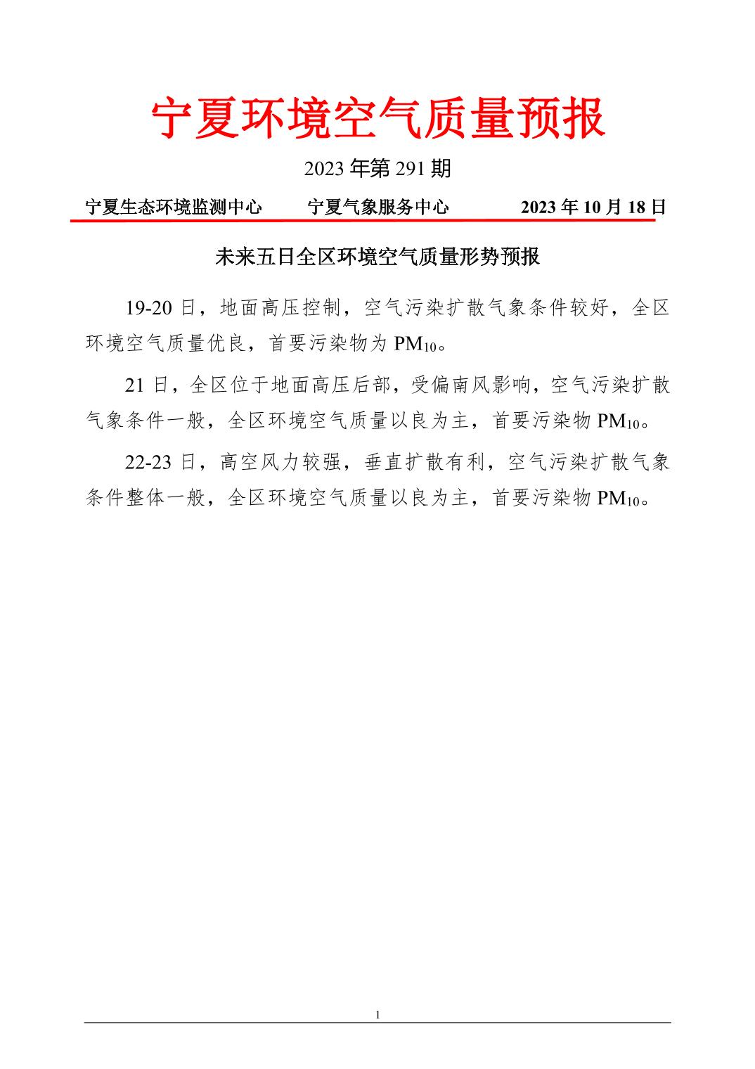 2023年10月18日宁夏环境空气质量预报信息