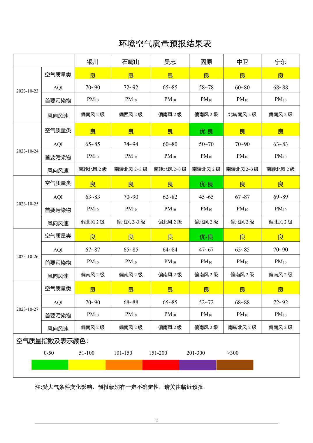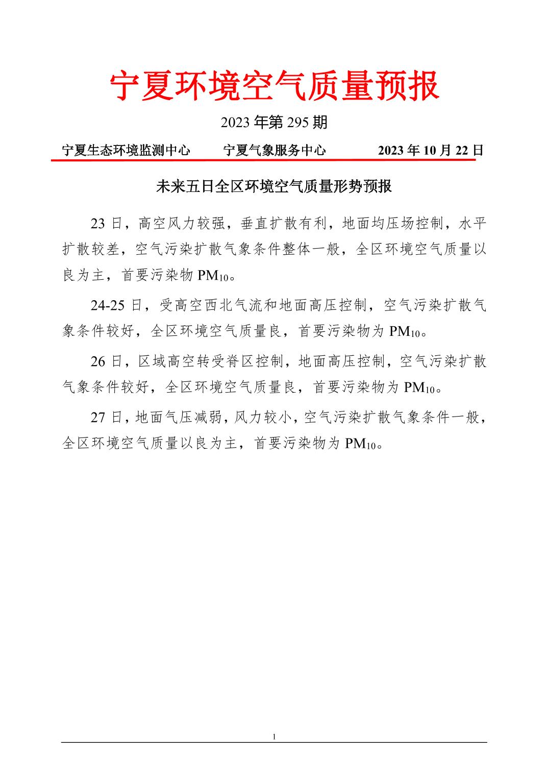 2023年10月22日宁夏环境空气质量预报信息