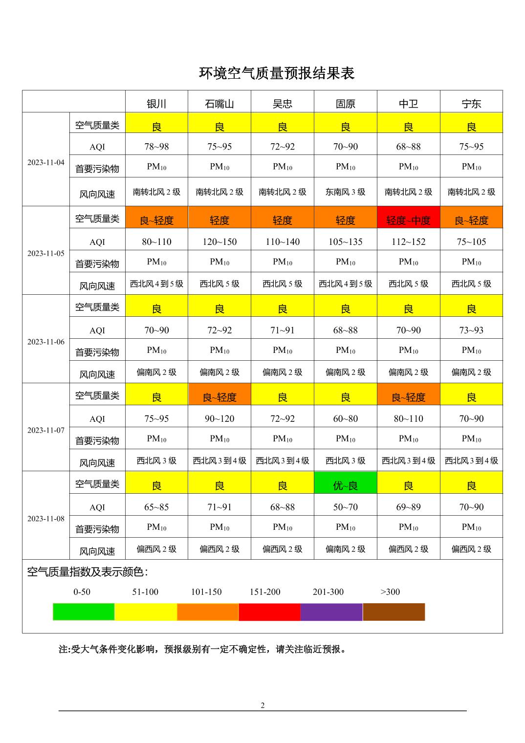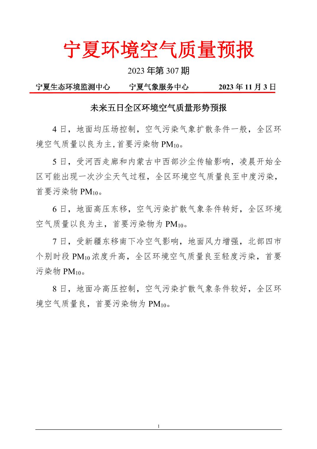 2023年11月3日宁夏环境空气质量预报信息