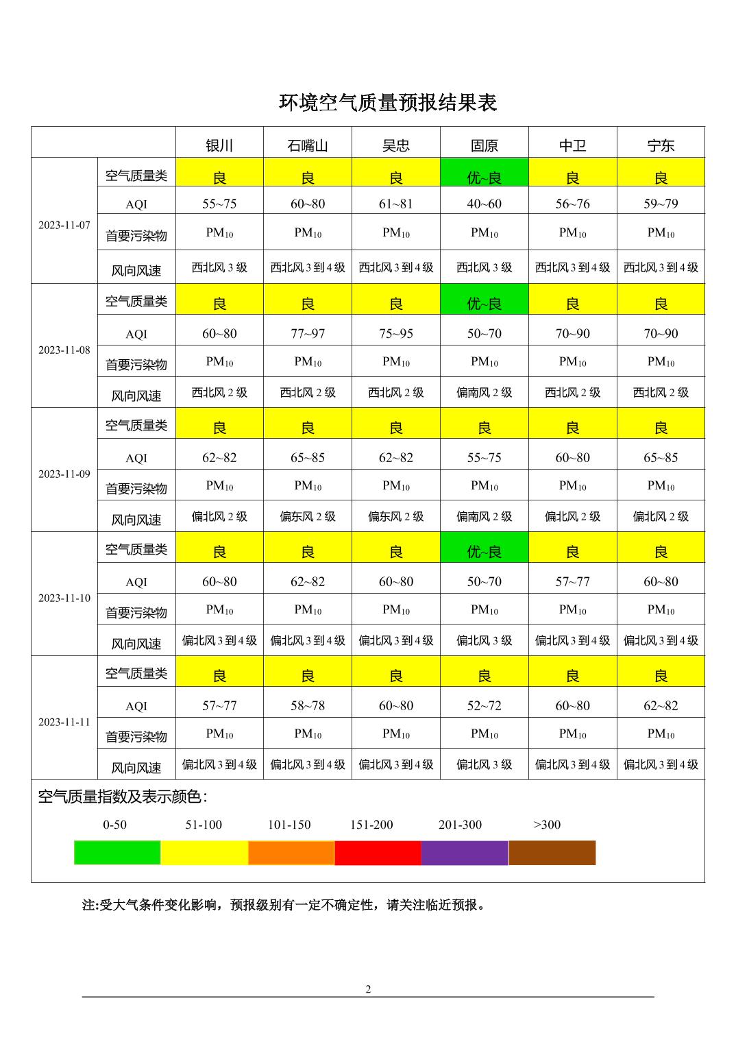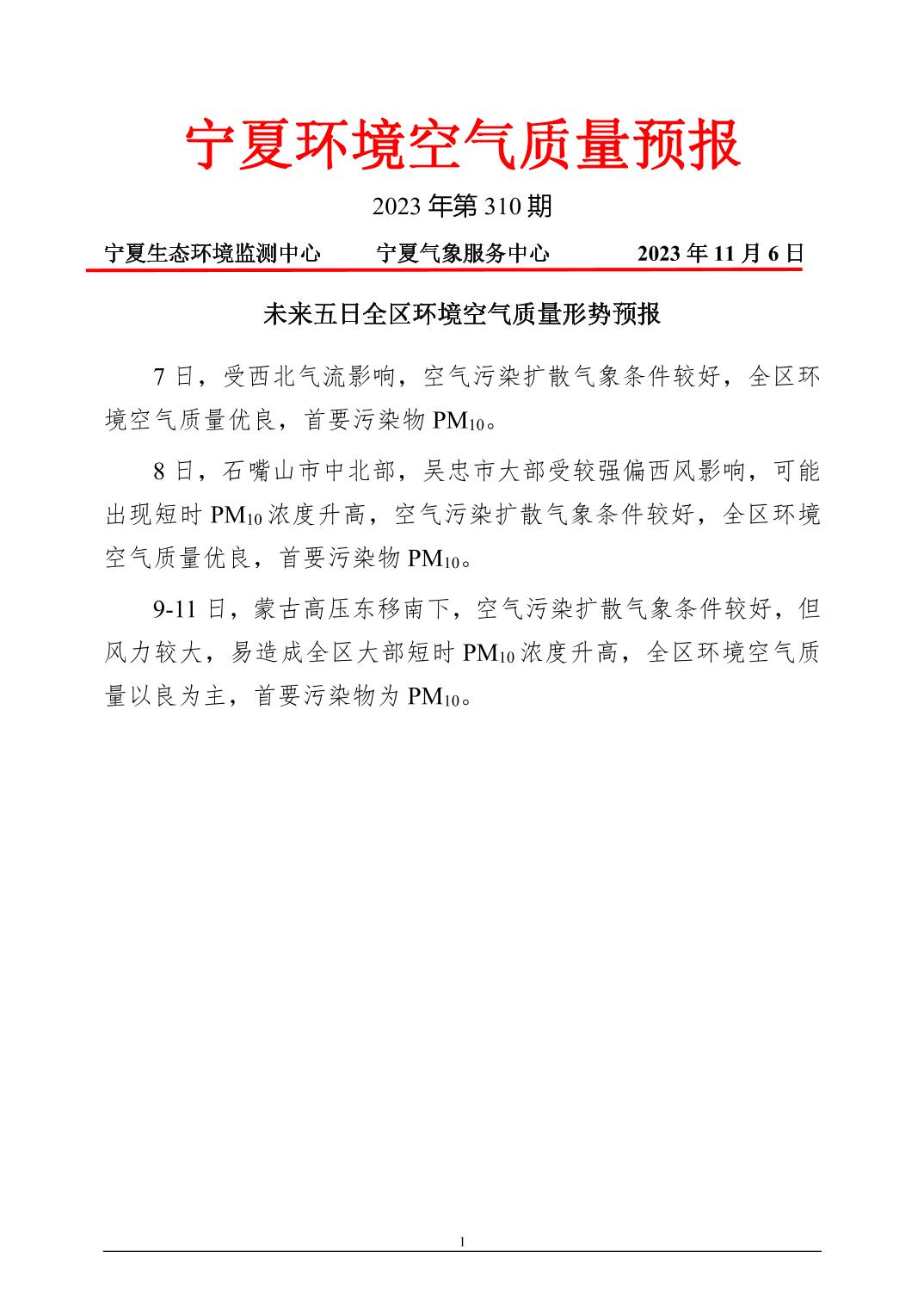 2023年11月6日宁夏环境空气质量预报信息