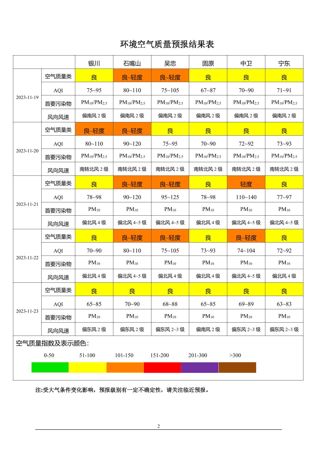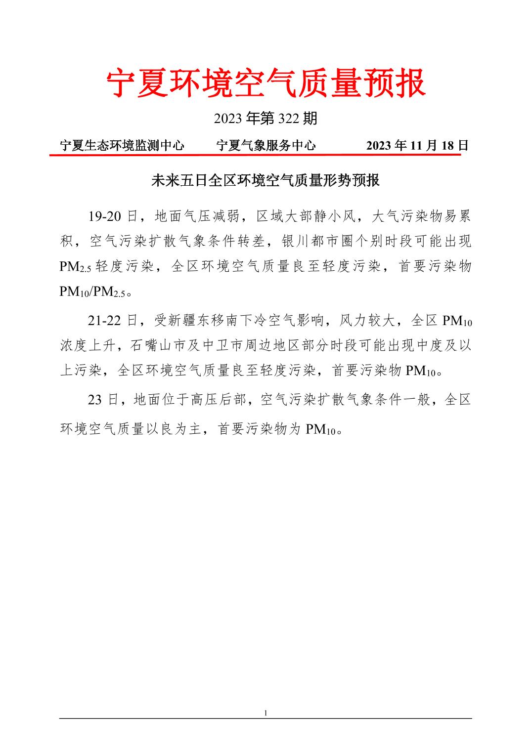 2023年11月18日宁夏环境空气质量预报信息