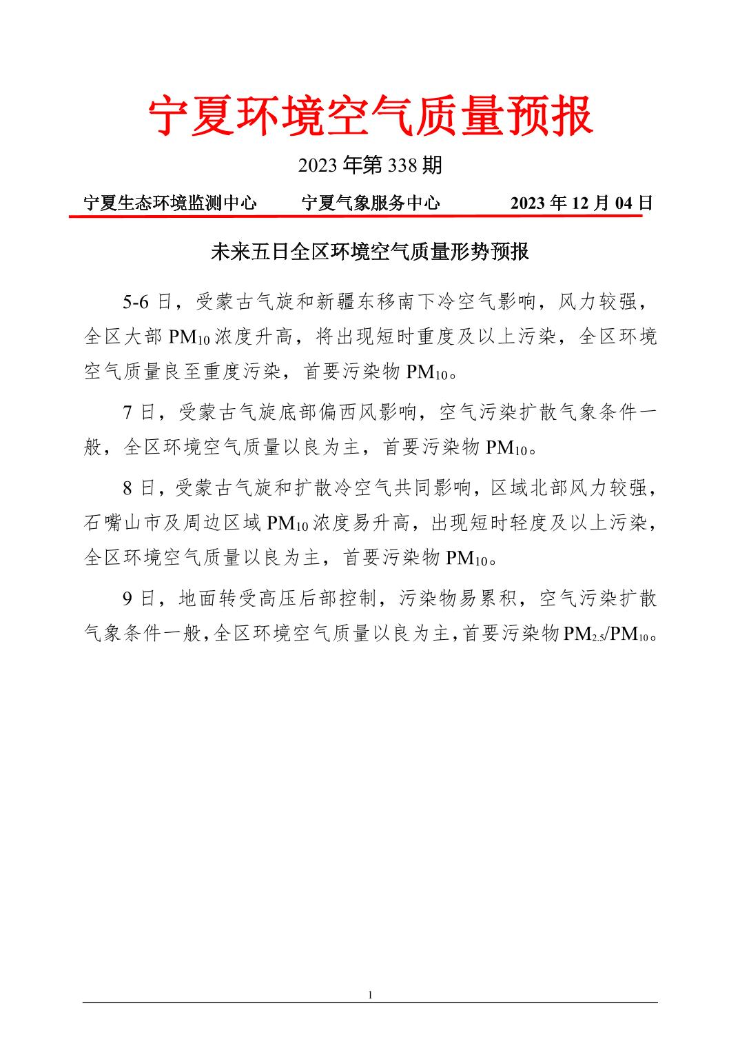 2023年12月4日宁夏环境空气质量预报信息