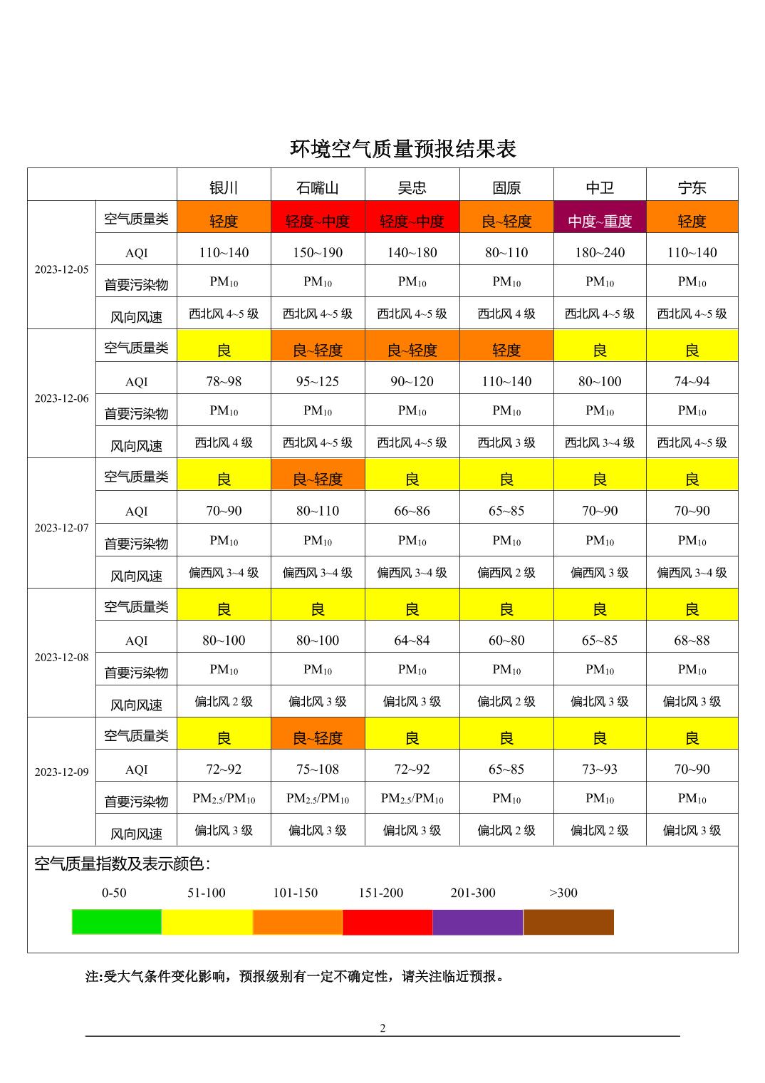 > 环境空气质量预报