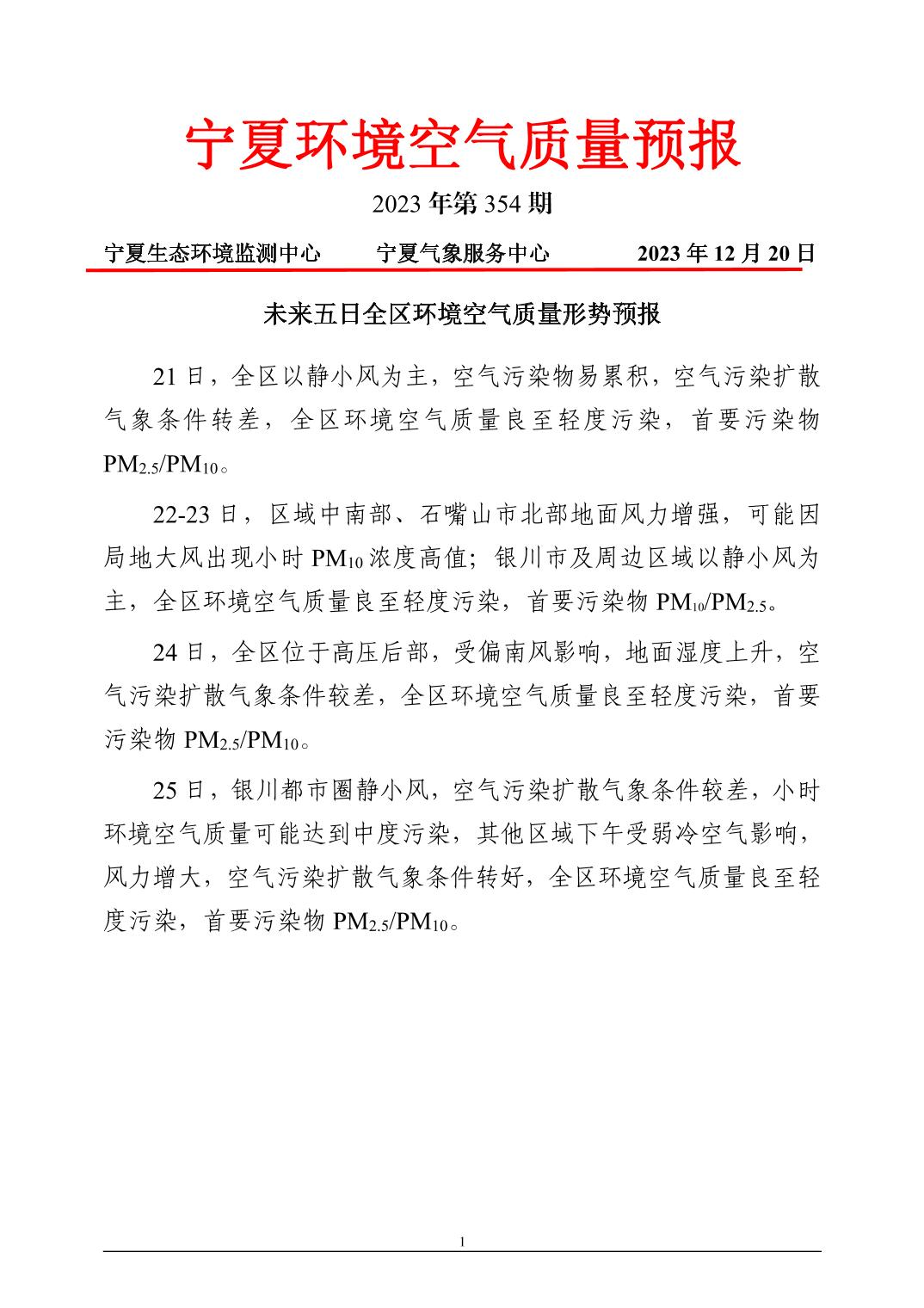 2023年12月20日宁夏环境空气质量预报信息