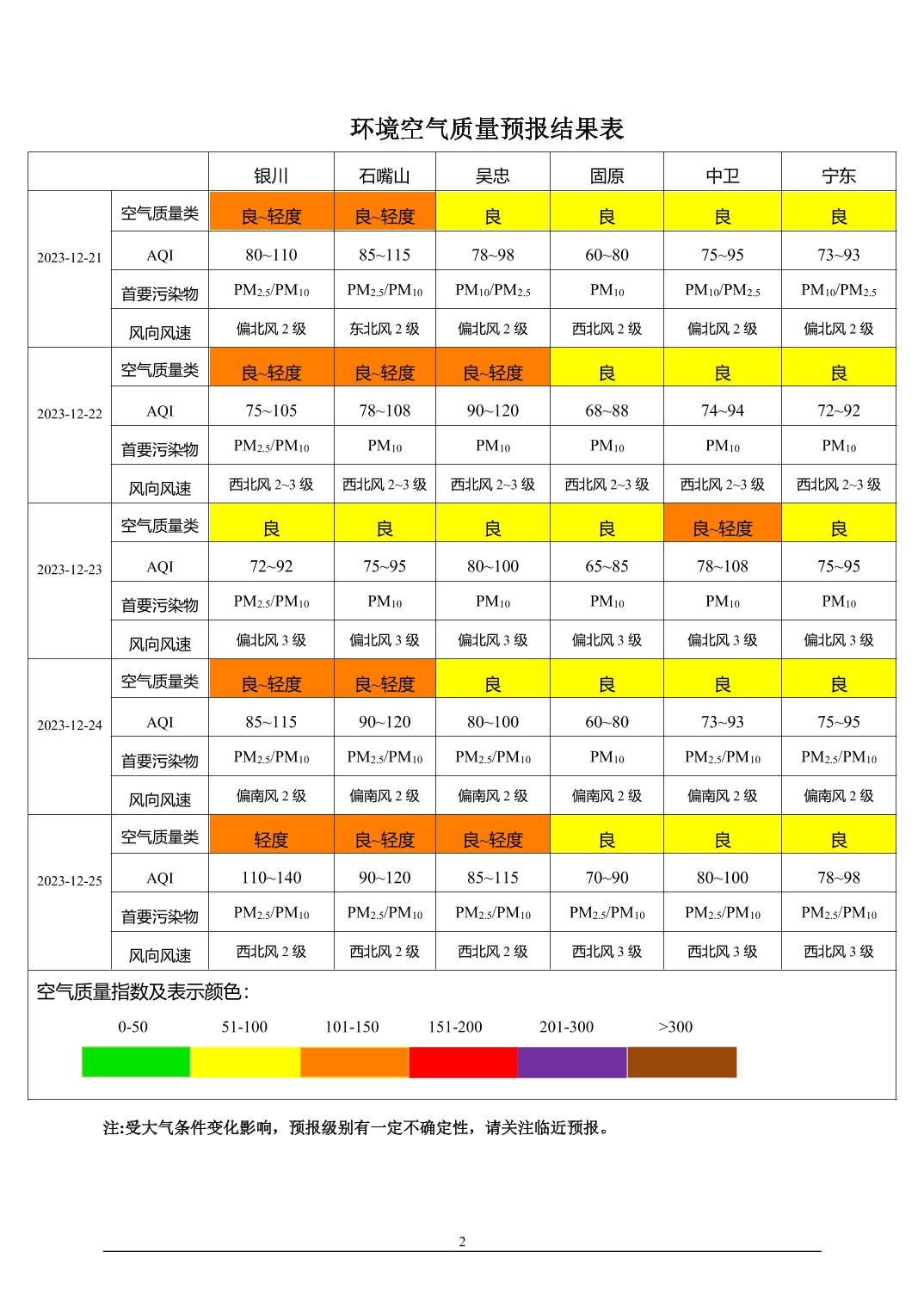 > 环境空气质量预报