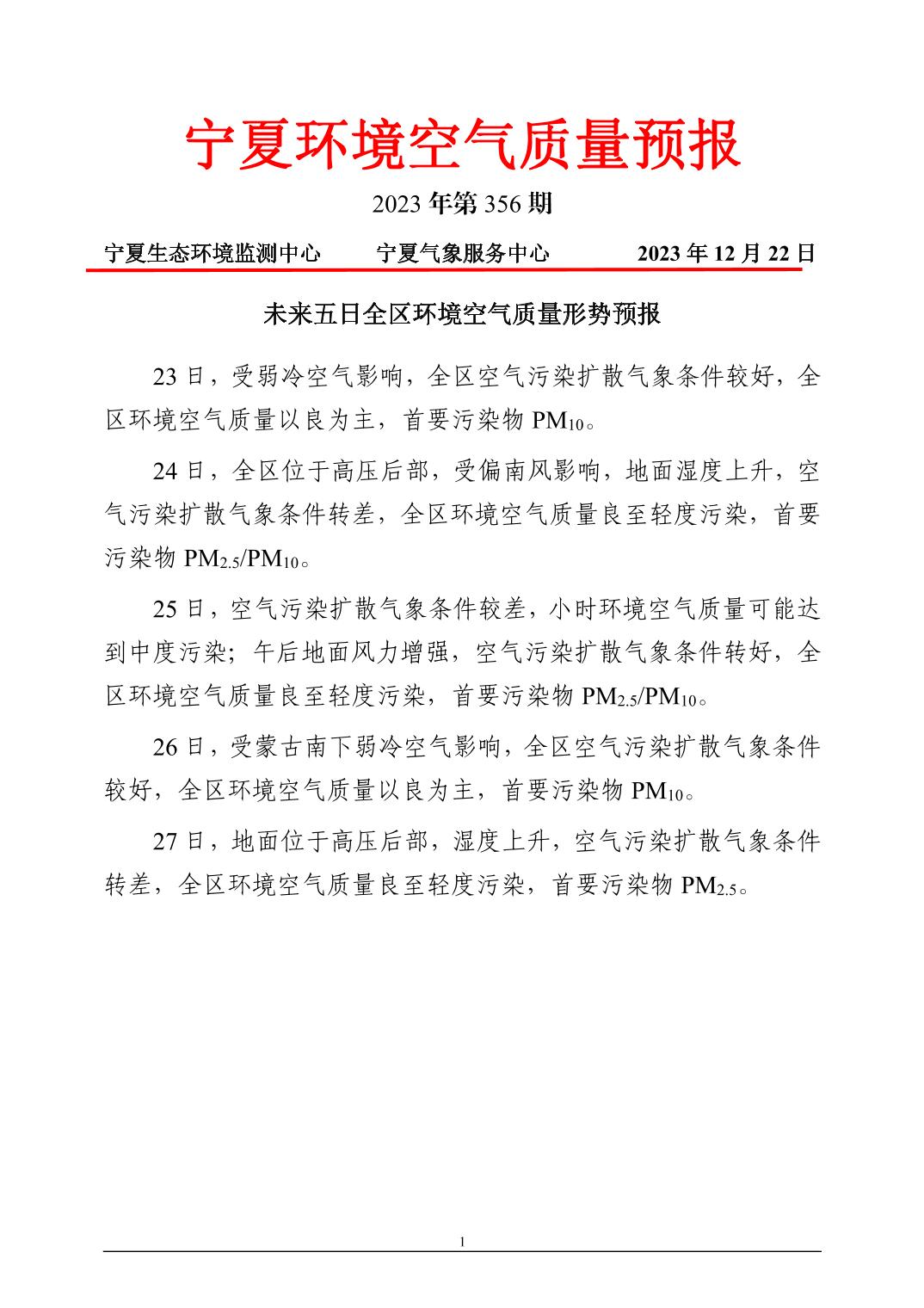 2023年12月22日宁夏环境空气质量预报信息