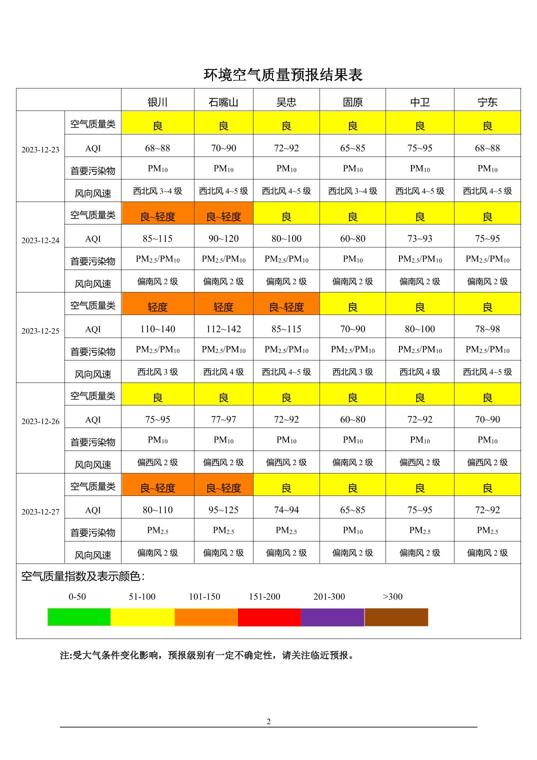 > 环境空气质量预报