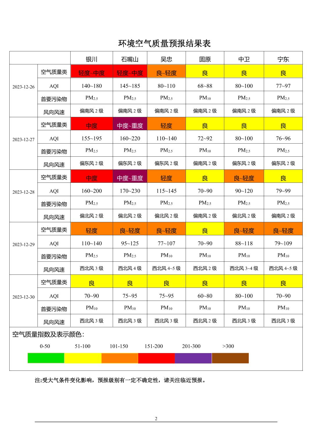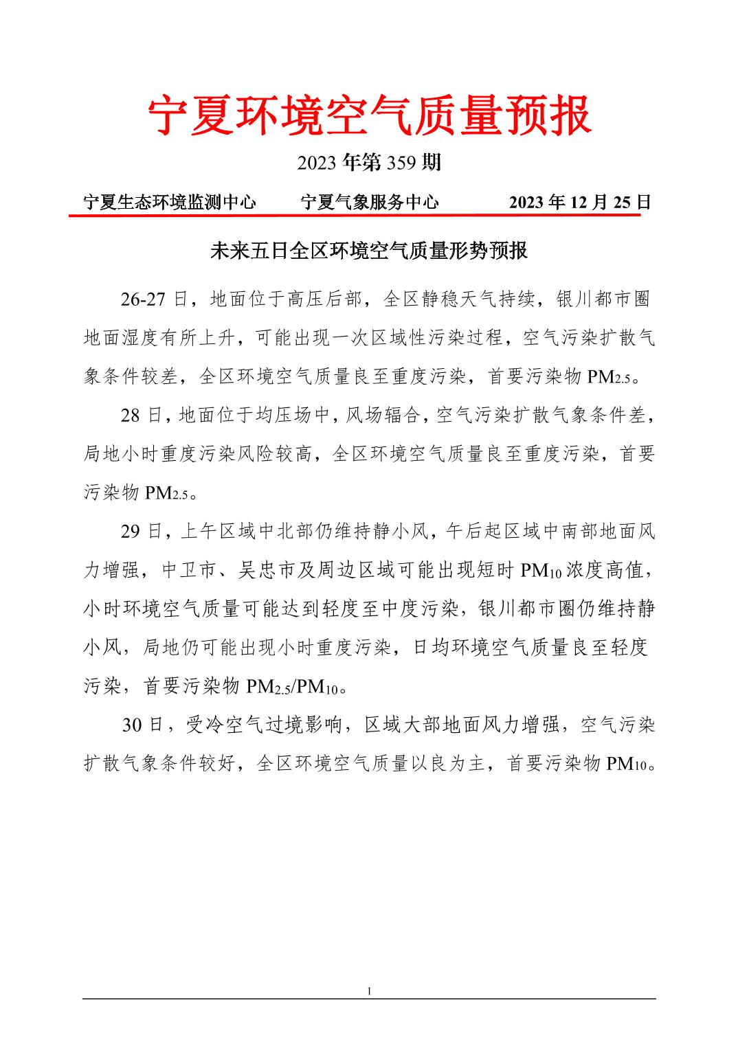 2023年12月25日宁夏环境空气质量预报信息